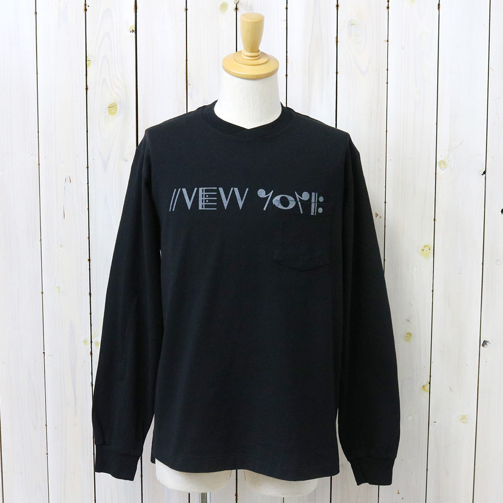 ENGINEERED GARMENTS : Printed Cross Crew Neck L/S T-shirt-Black (NY)