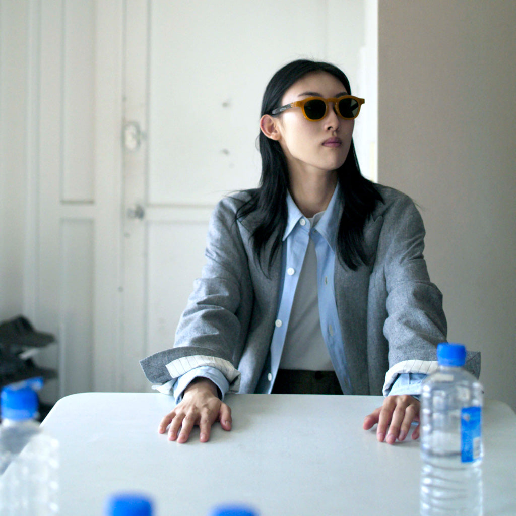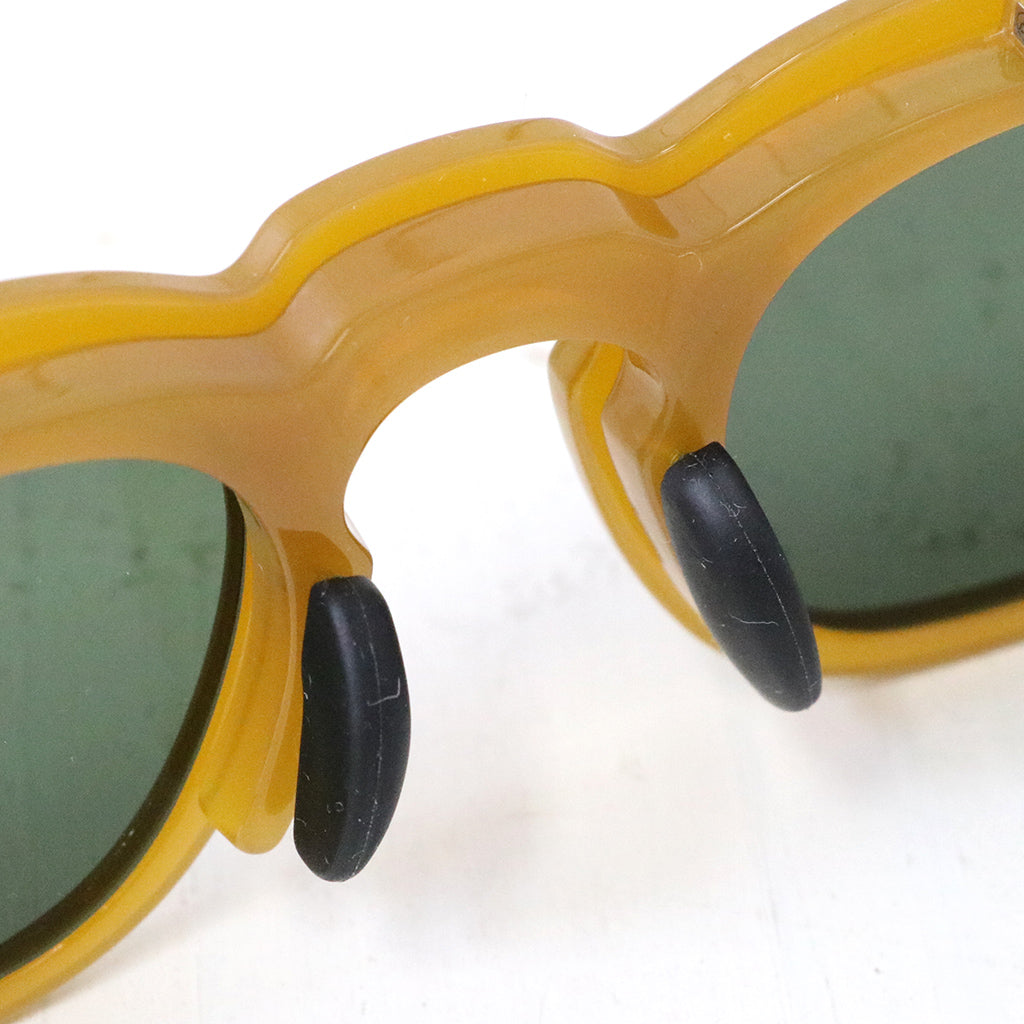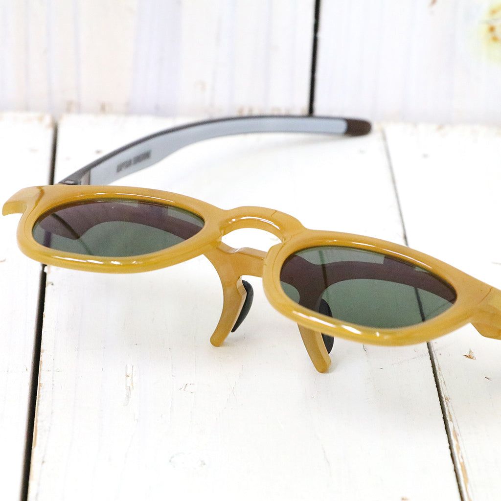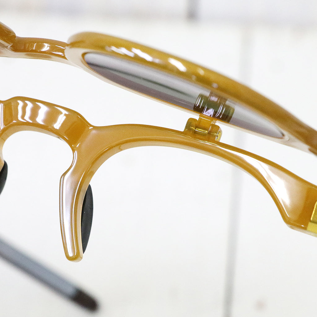 Kaptain Sunshine×EYEVOLのコラボレーション サングラスです。フレンチヴィンテージをアレンジしたクラシックな跳ね上げのデザインで、軽く、強度の高い素材「TR-90(ポリアミド樹脂)」で、細かいパーツを構成、緩みにくいオリジナル丁番パーツを跳ね上げコマ部分に採用することで、安定した開閉を実現し、一般的なFLIP UPのサングラスより重い、破損しやすいなどデメリットが発生しにくい設計です。