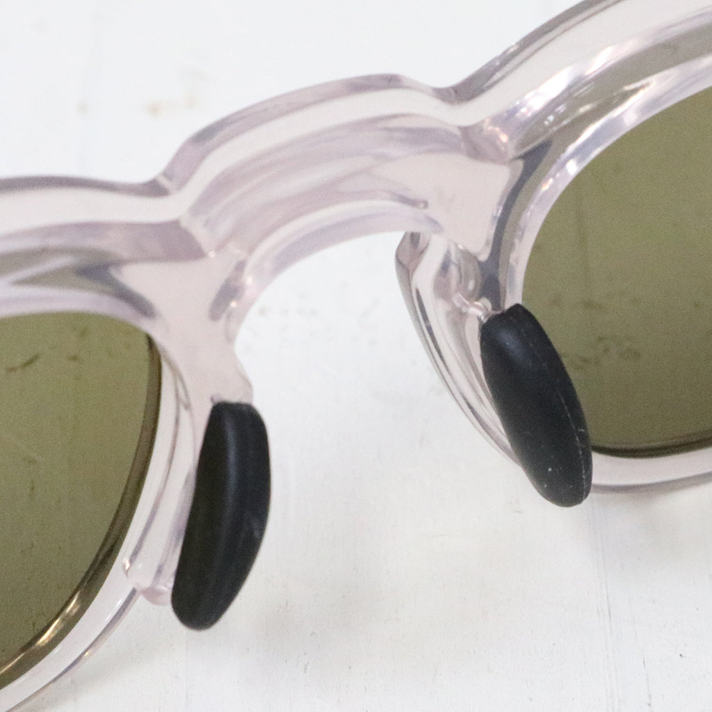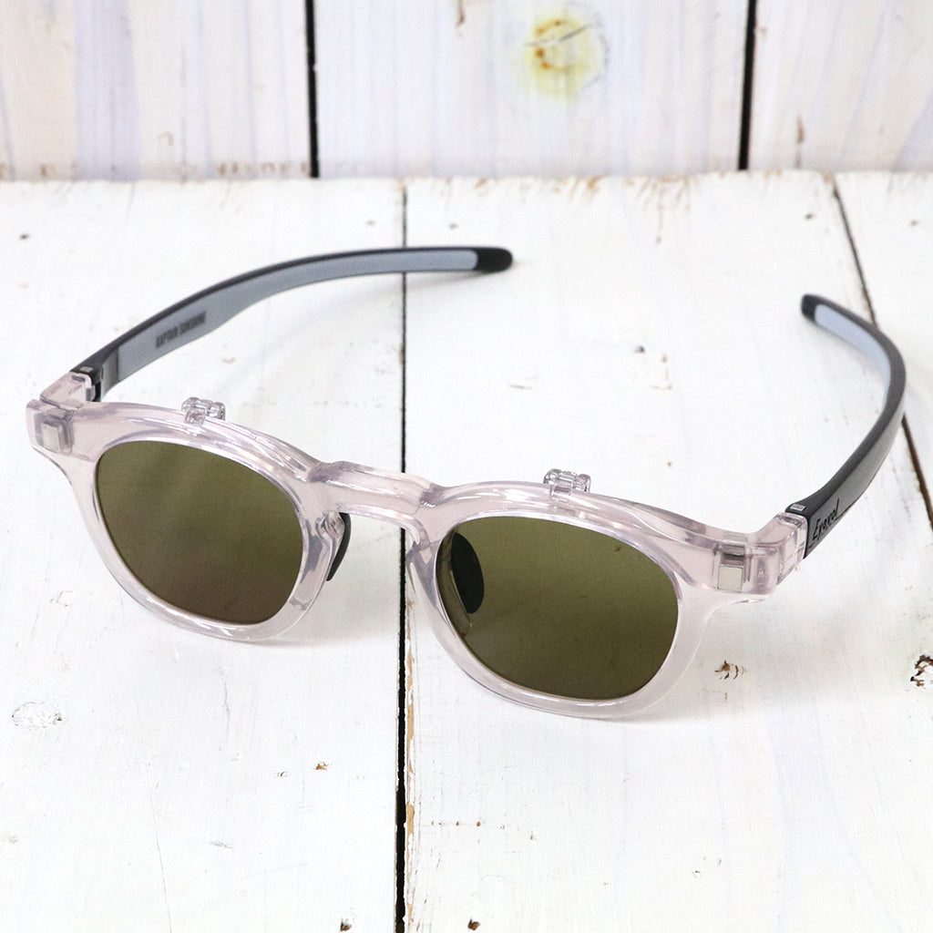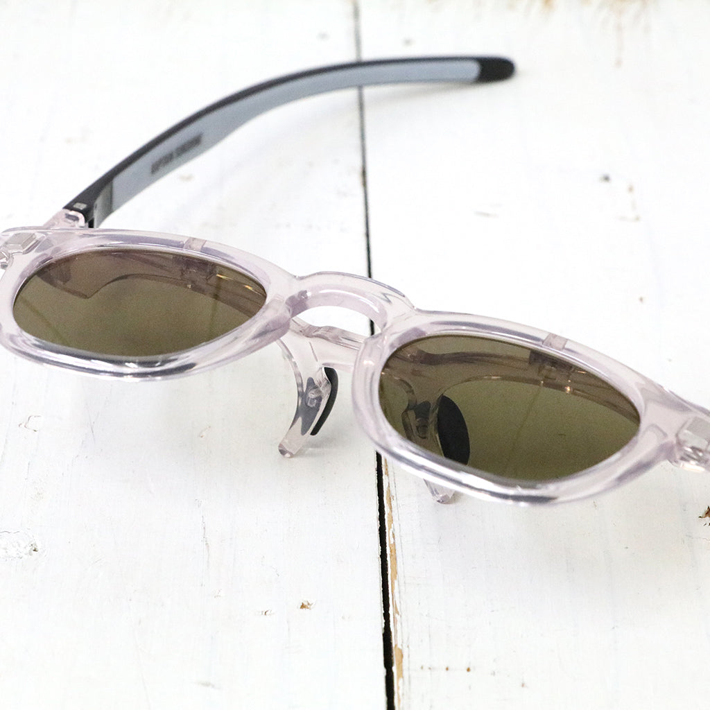 Kaptain Sunshine×EYEVOLのコラボレーション サングラスです。フレンチヴィンテージをアレンジしたクラシックな跳ね上げのデザインで、軽く、強度の高い素材「TR-90(ポリアミド樹脂)」で、細かいパーツを構成、緩みにくいオリジナル丁番パーツを跳ね上げコマ部分に採用することで、安定した開閉を実現し、一般的なFLIP UPのサングラスより重い、破損しやすいなどデメリットが発生しにくい設計です。