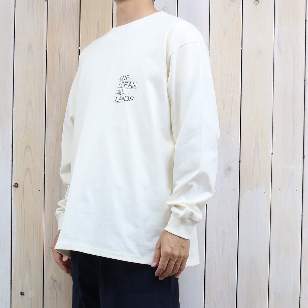 オーガニックコットン天竺を使用したロングスリーブTシャツです。左胸に”ONE OCEAN, ALL LANDS”のプリントが入ったシンプルなデザインで、リラックス感のあるゆったりとしたシルエットです。