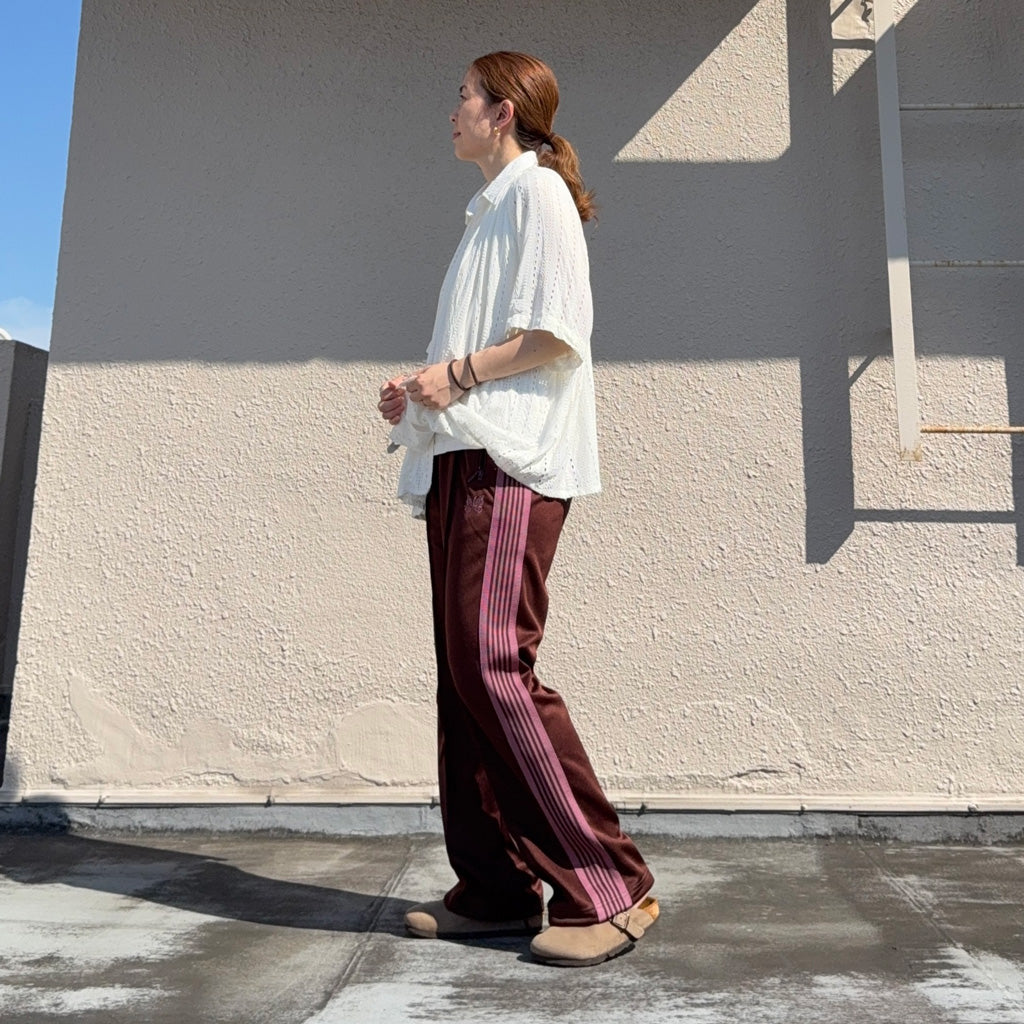 Needlesの代表的なアイテムのトラックパンツです。ポリエステル素材のジャガード生地を使用し、センタープリーツにワンポイントのパピヨン刺繍がニードルスならではのデザインを感じられる一本です。スポーティーなアイテムながら、センタープレス仕様が奇麗な印象なので、テーラードスタイルやミリタリースタイルなどとミックスさせて個性的なスタイリングを楽しめます。