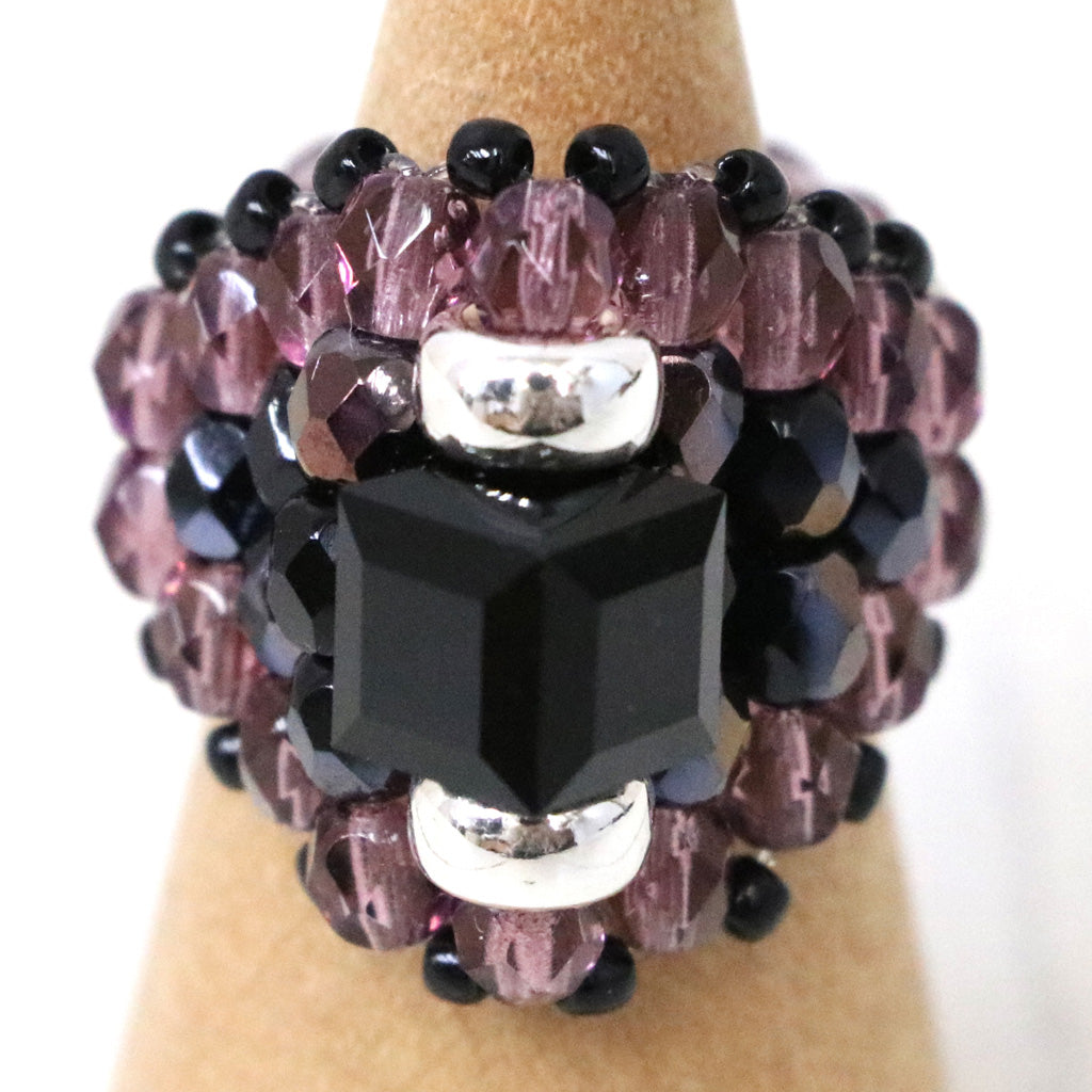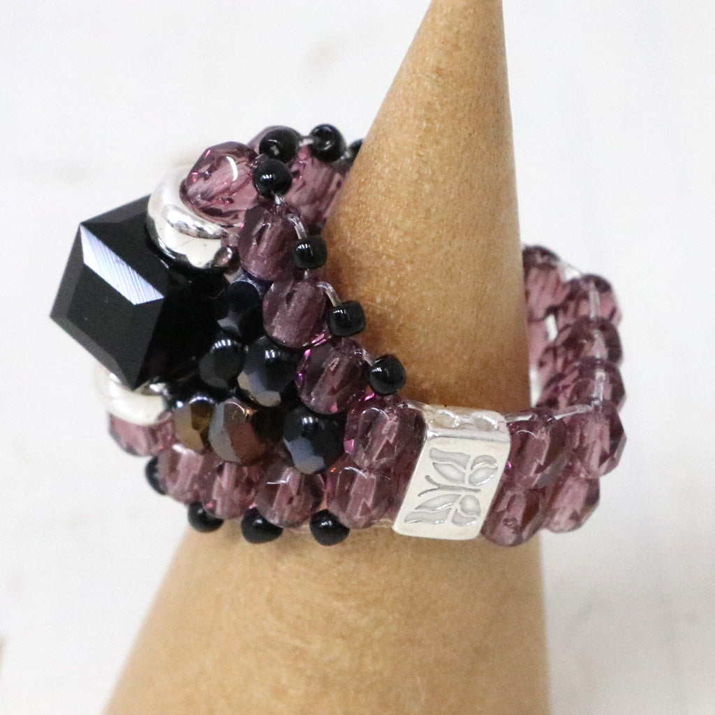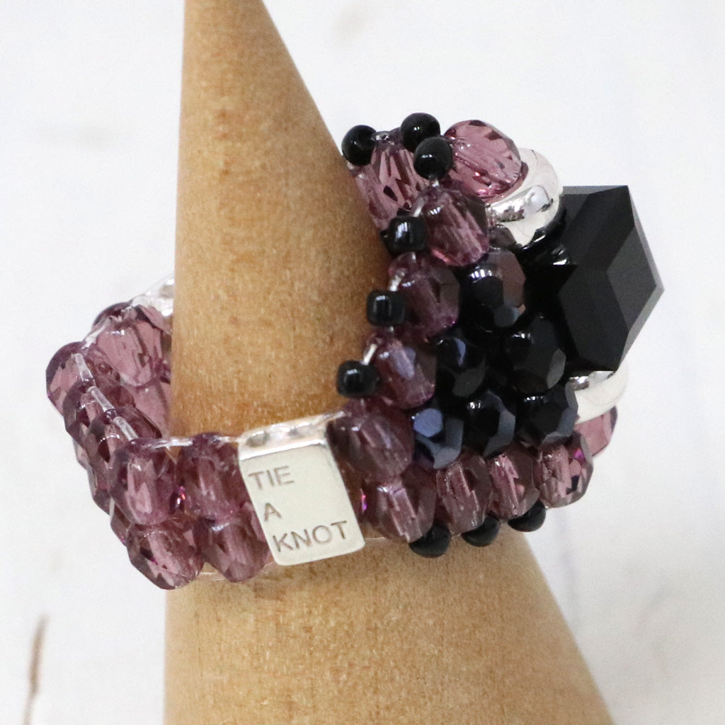 NeedlesxTie A Knot : Square Crystal Beads Ring (Black/Purple)