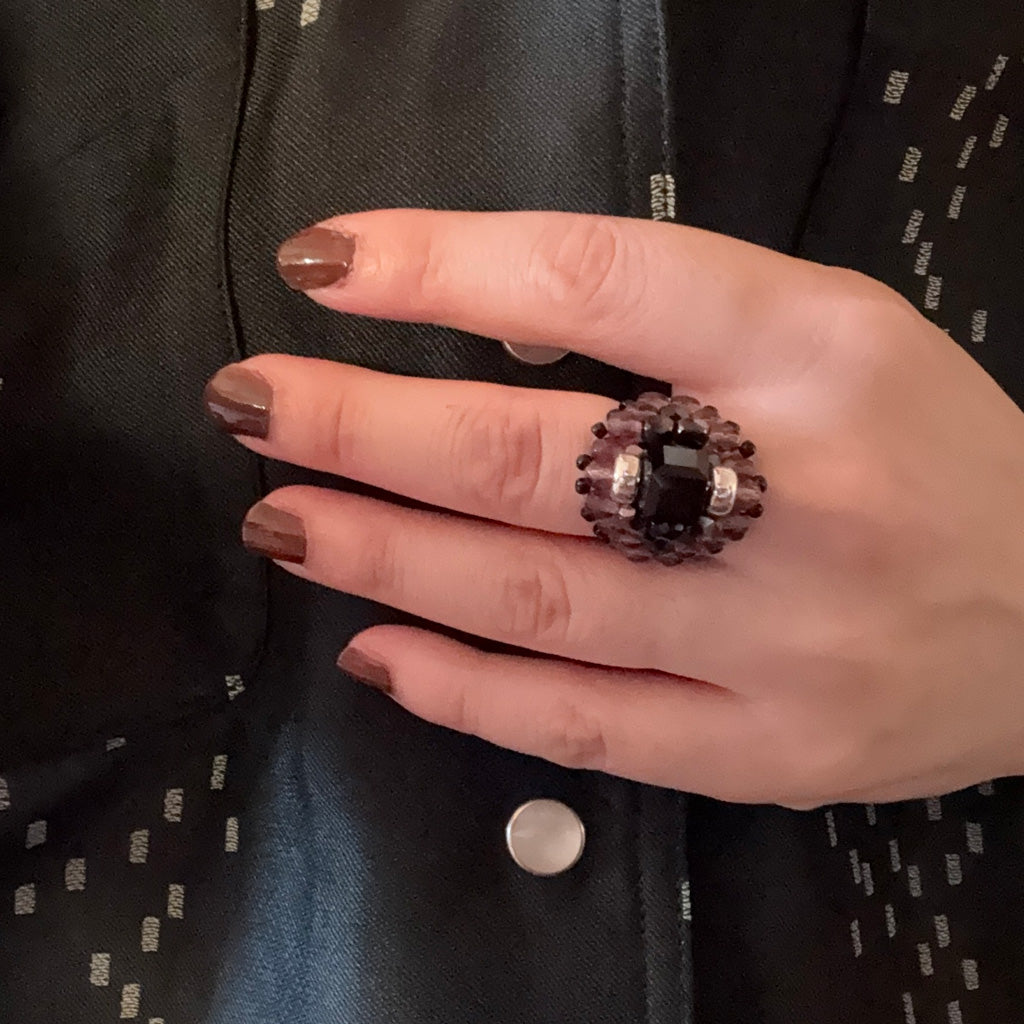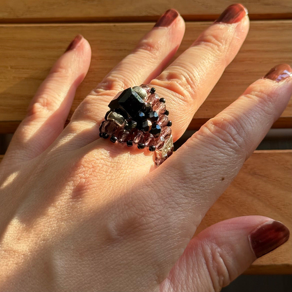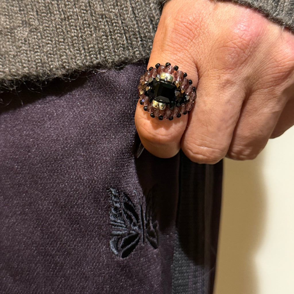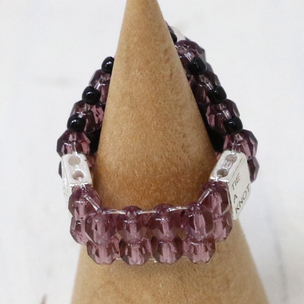 NeedlesxTie A Knot : Square Crystal Beads Ring (Black/Purple)
