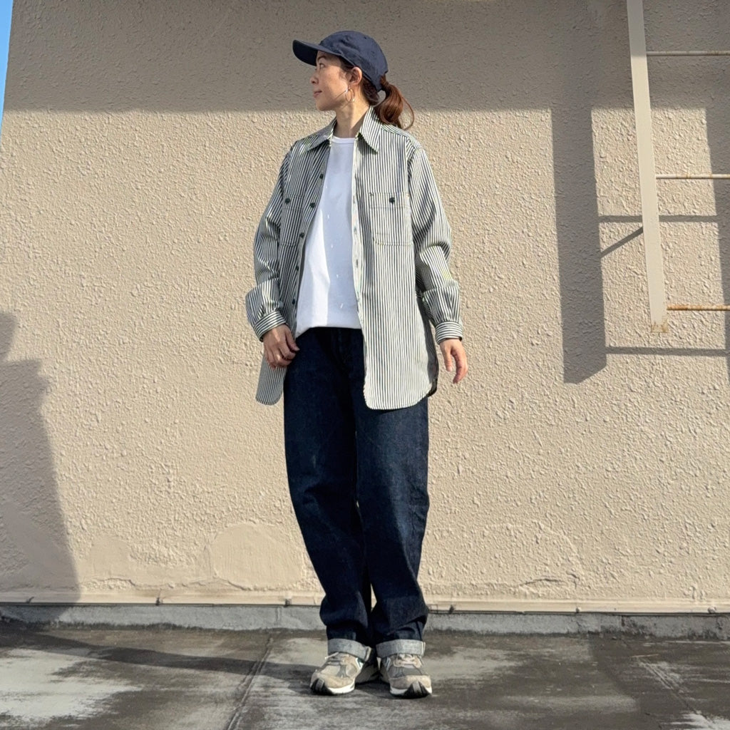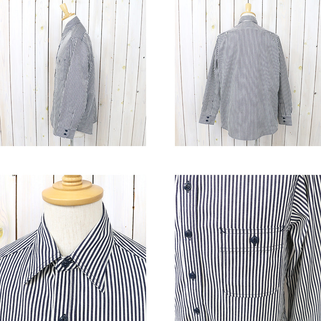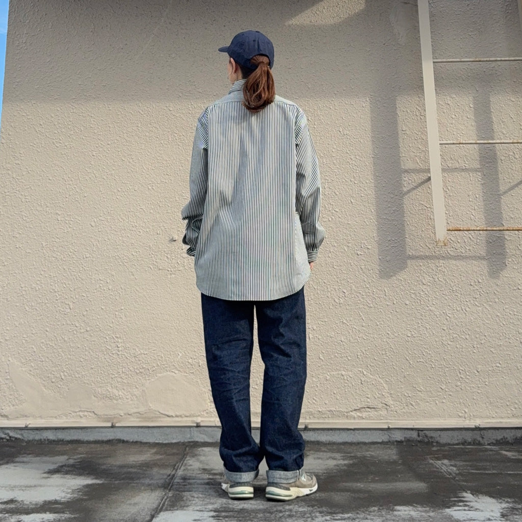 SASSAFRAS : GARDENING AT NIGHT SHIRT(6oz HICKORY) (WHITE/INDIGO)