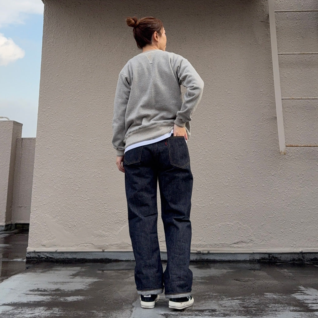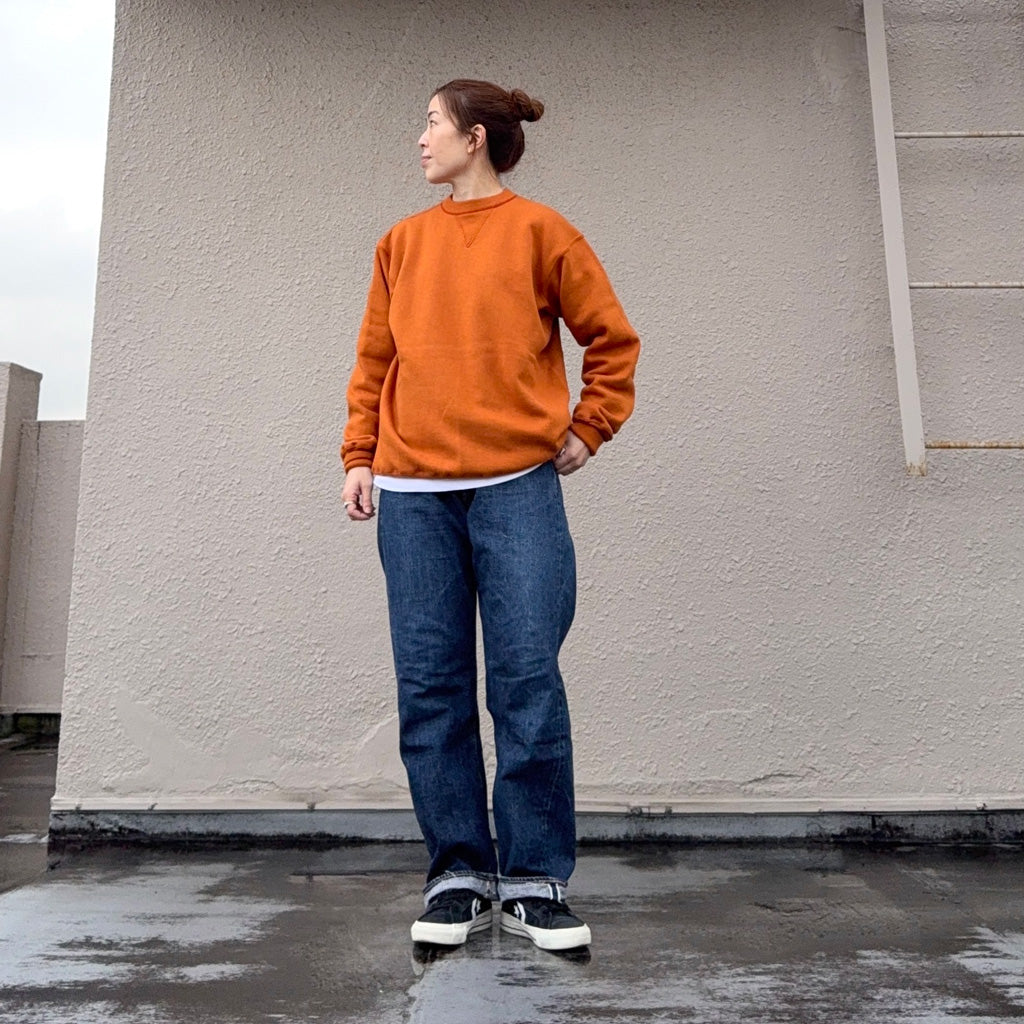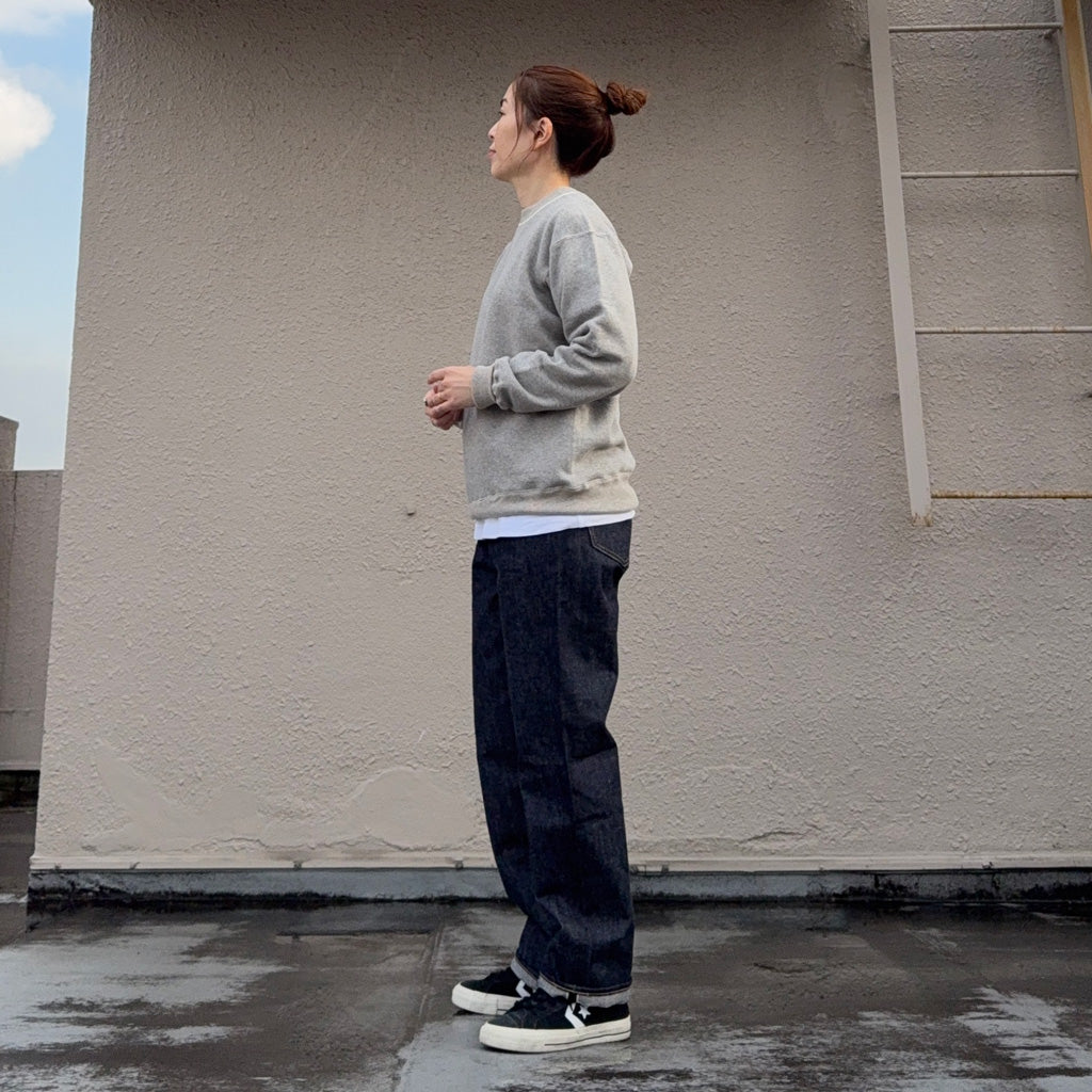 ウエアハウスのフラッグシップモデルLot.1001のノンウォッシュタイプです。1930年代のデニムバナーを解体・研究した結果たどり着いたデニムを採用し、ベルトループはオフセット仕様です。大戦後に製造されたやや裾細のシルエットをイメージし、ジャストサイズでも腰回りにはゆとりがあって、裾にかけて細くなる理想的なシルエットです。