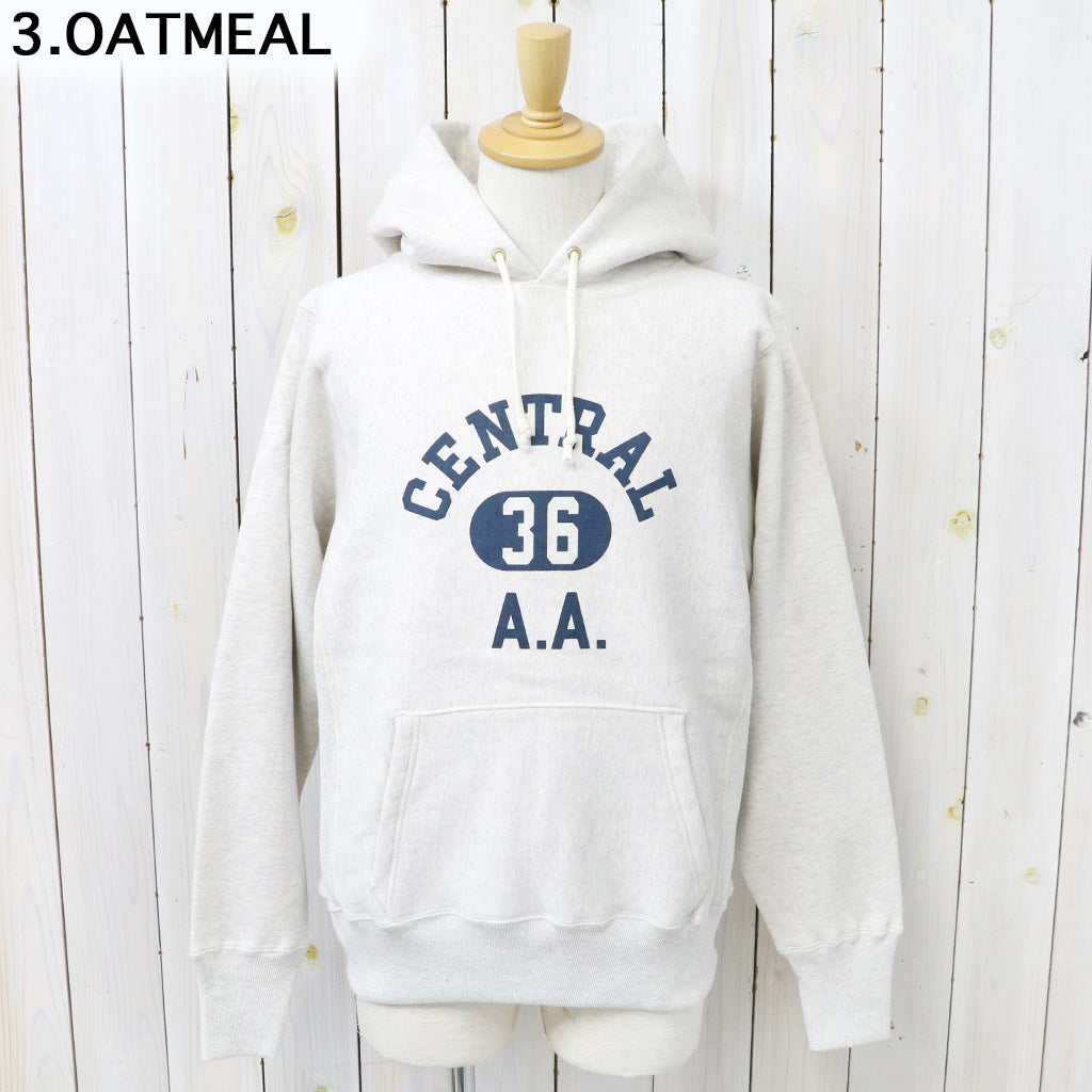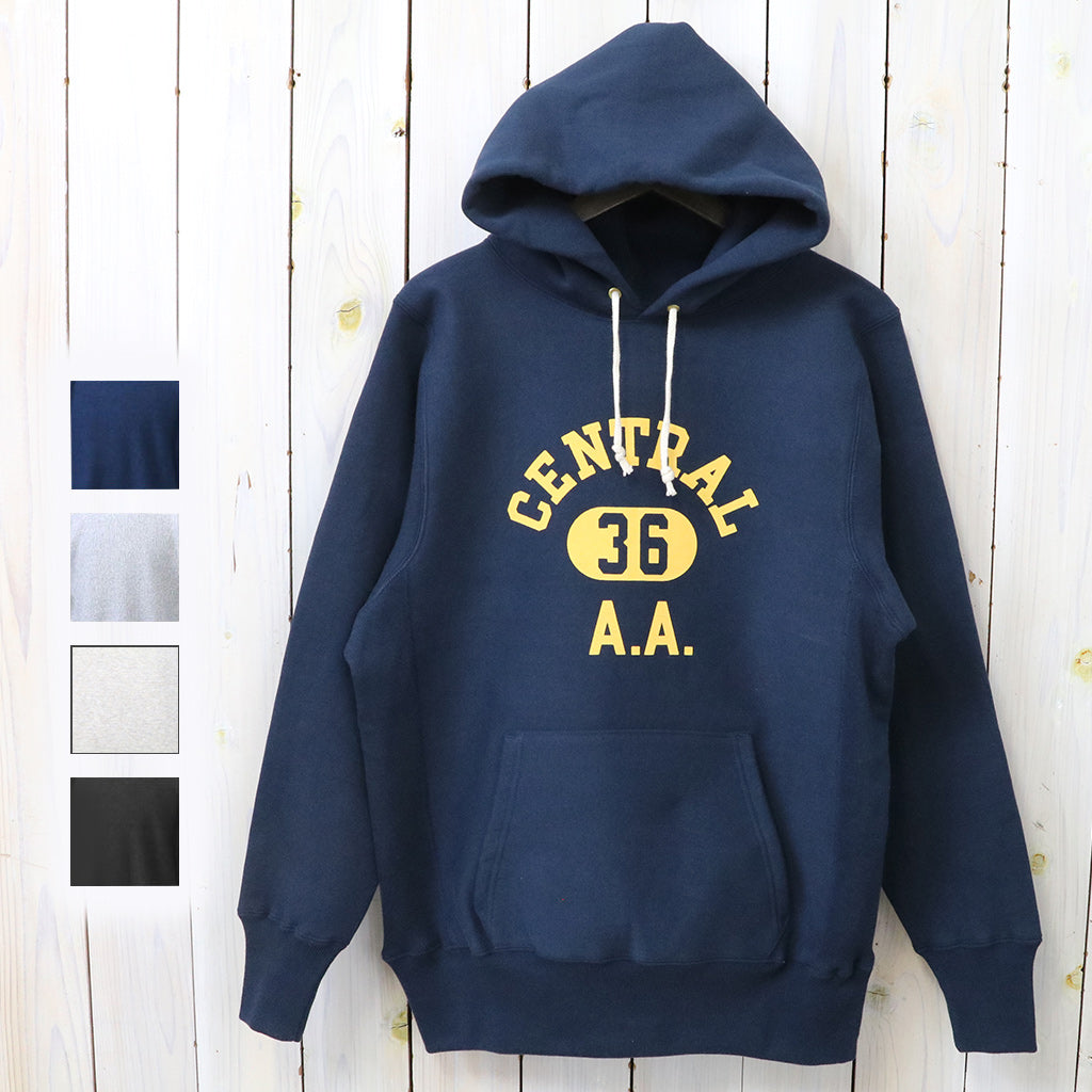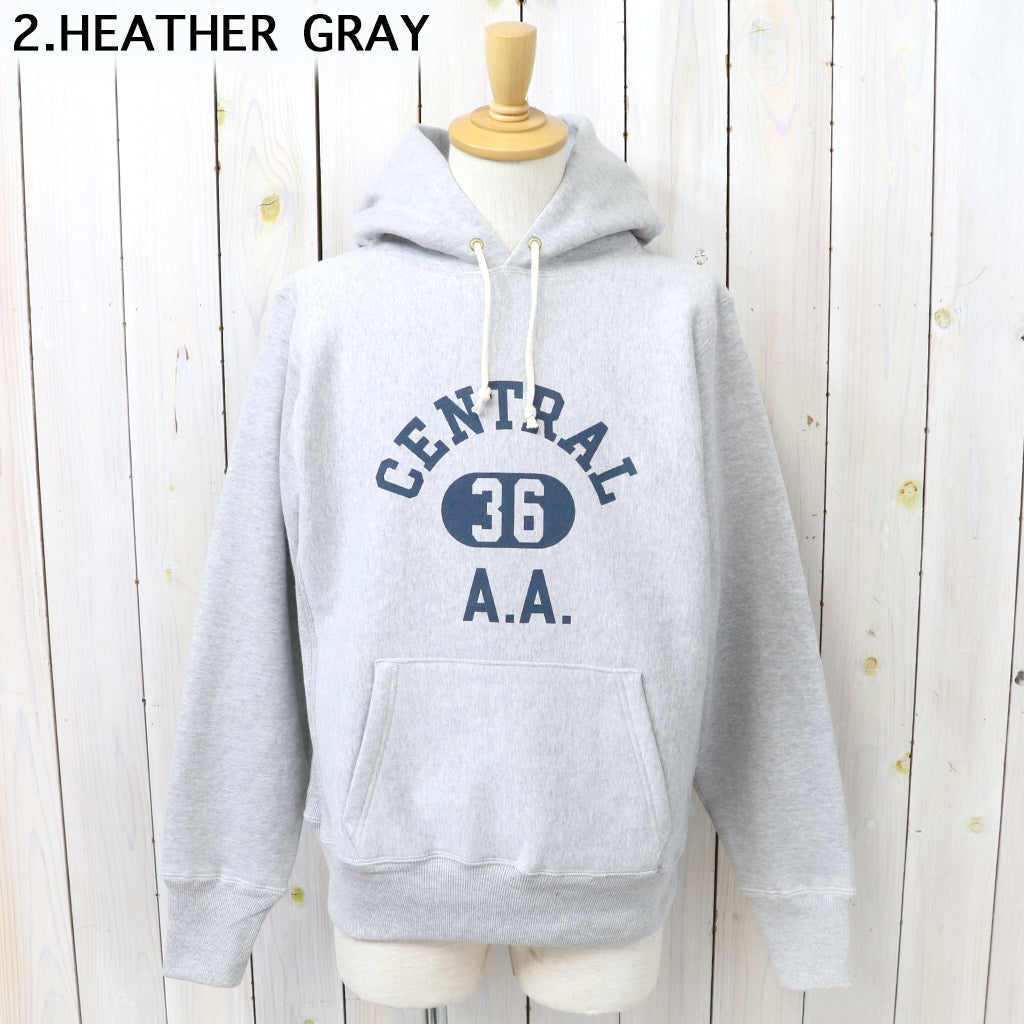 希少な1930年代の杢のスウェットを再現するために試行錯誤を繰り返した、リバーススタイル仕様のプルオーバーパーカです。生地をウールを編むような作り方で作っていた時代の稀少なスウェットは、鹿の子を吊り編みで機で製造したあと、裏起毛をかけ、さらには反染めと呼ばれる、生地の段階で染めるのではなく糸を染めてから生地を編むため、表面に独特のちらつきが見え、独特のムラ感が魅力になります。フロントにCENTRALのプリントが入ったデザインです。