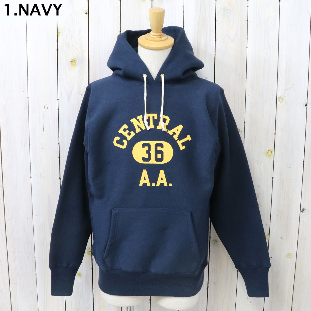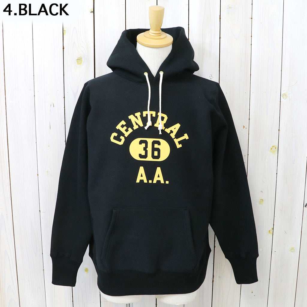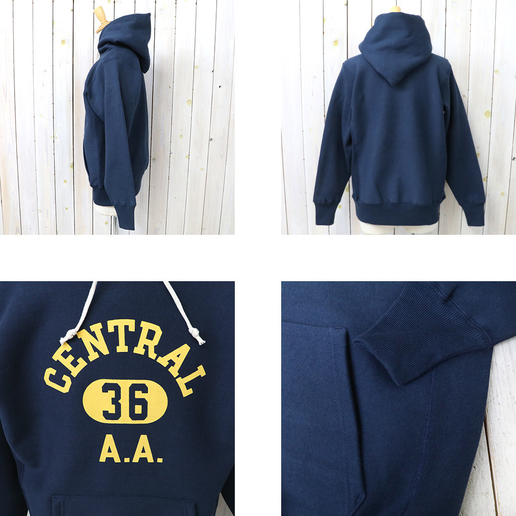 希少な1930年代の杢のスウェットを再現するために試行錯誤を繰り返した、リバーススタイル仕様のプルオーバーパーカです。生地をウールを編むような作り方で作っていた時代の稀少なスウェットは、鹿の子を吊り編みで機で製造したあと、裏起毛をかけ、さらには反染めと呼ばれる、生地の段階で染めるのではなく糸を染めてから生地を編むため、表面に独特のちらつきが見え、独特のムラ感が魅力になります。フロントにCENTRALのプリントが入ったデザインです。