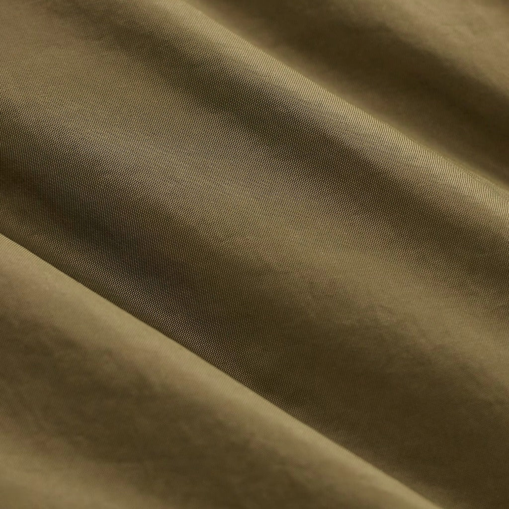 さりげない光沢を持つナイロンツイルを使用したマウンテンパーカーデザインのジャケットです。フードにフェイクファーのトリム付きで、フードと身頃上部にハイパイルフリースの裏地、身頃下部にダイヤモンドキルティングの裏地がつきます。熱を逃しにくいダウン代替素材の中綿を採用しています。