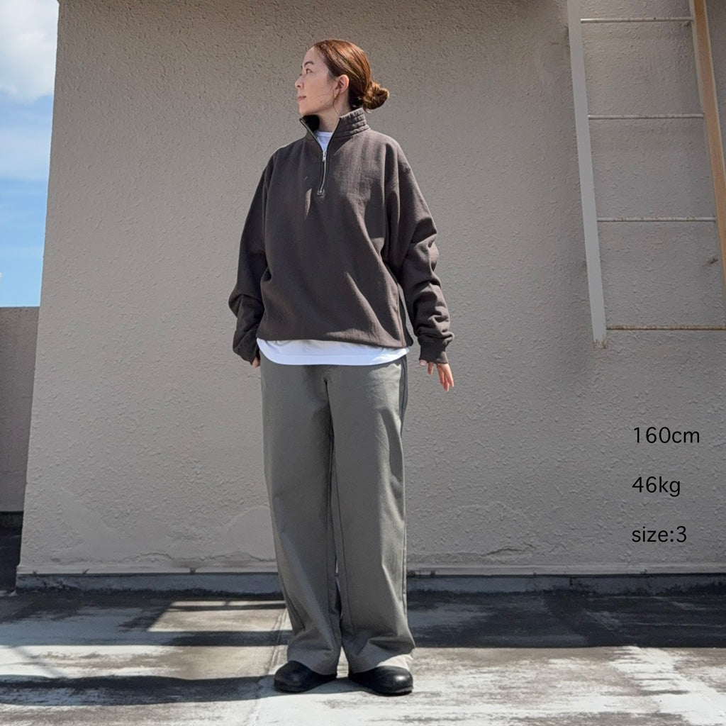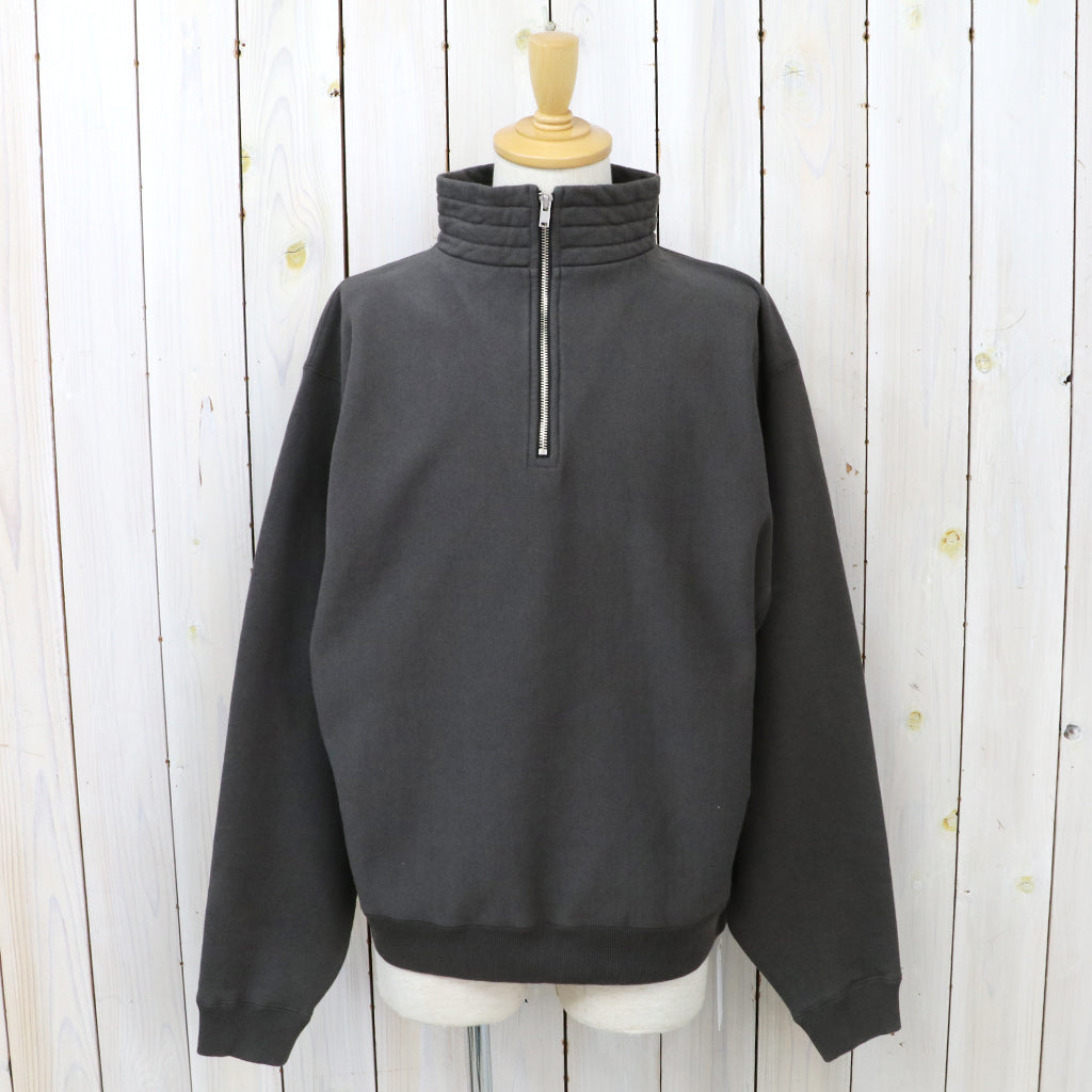空気紡績したドライでナチュラルな糸を使用し、高密度にしっかり編み上げた定番オリジナルコットンスウェットのハーフジッププルオーバーです。リバースウェーブ仕様で、少しフェードしたような染色を施し、肩が落ちる着用感のゆったりシルエットです。