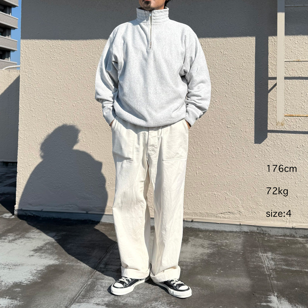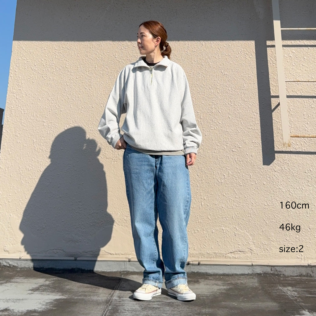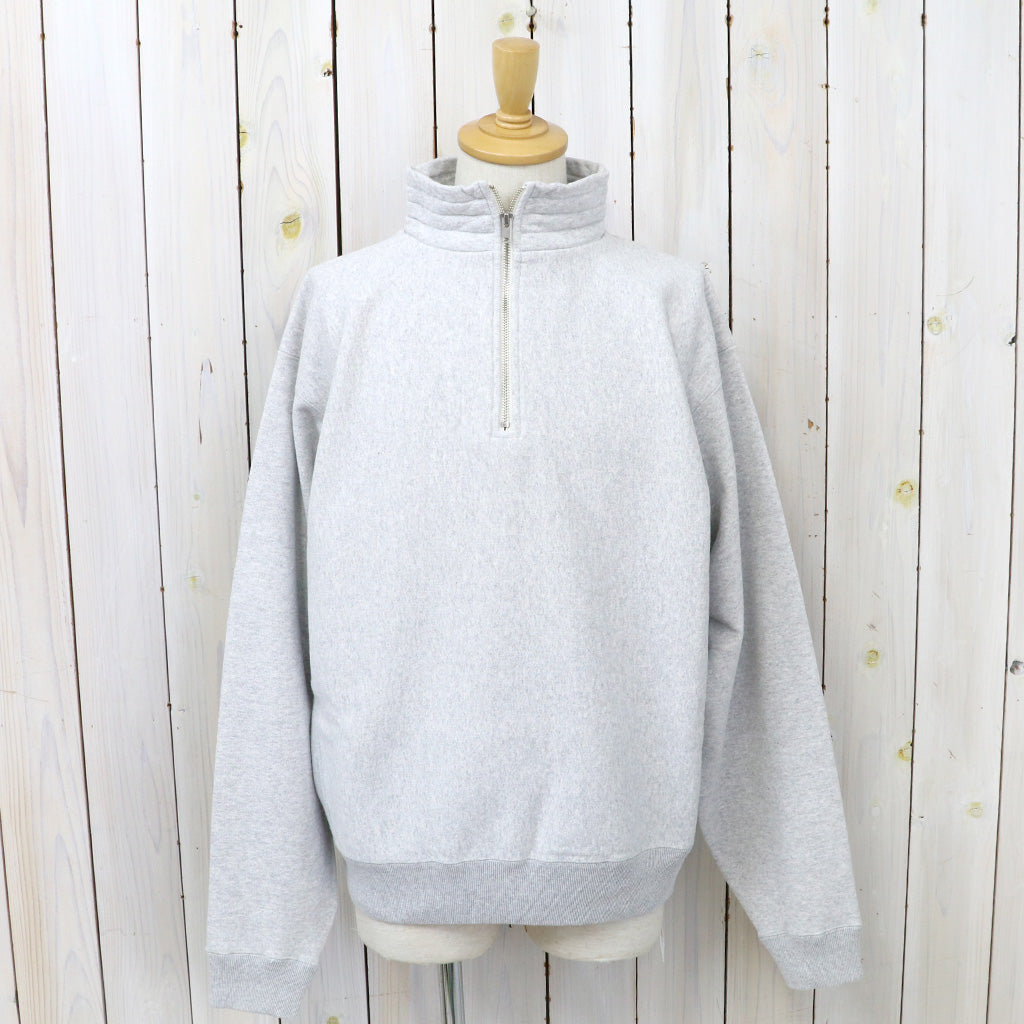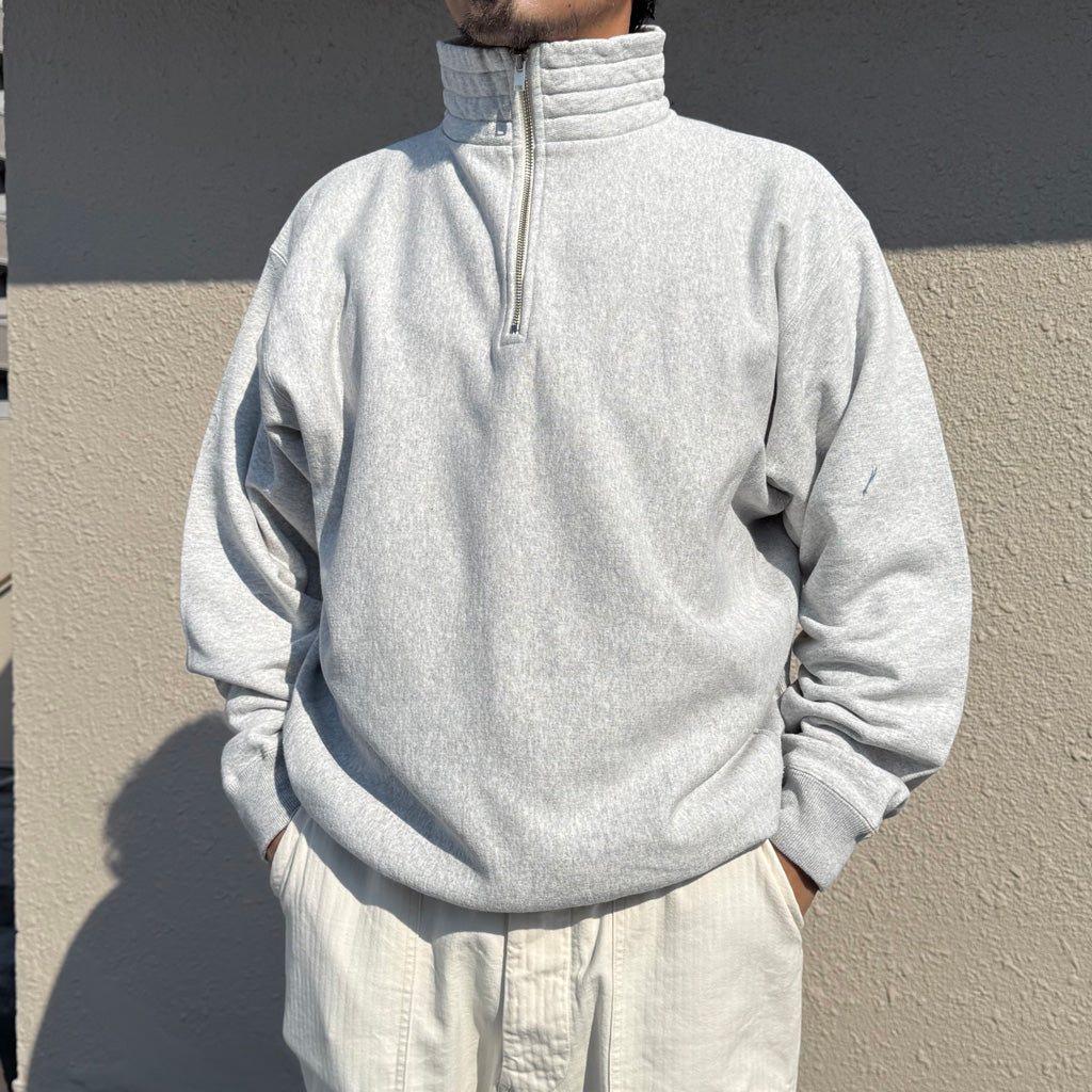 空気紡績したドライでナチュラルな糸を使用し、高密度にしっかり編み上げた定番オリジナルコットンスウェットのハーフジッププルオーバーです。リバースウェーブ仕様で、少しフェードしたような染色を施し、肩が落ちる着用感のゆったりシルエットです。