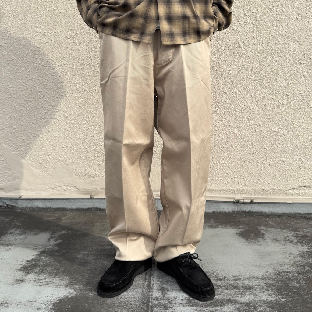 エジプト超長綿の選りすぐり、フィンクスコットンを超高密度に織り上げたドリルクロスを使用したワイドシルエットのパンツです。生地をしっかりと洗い込む事で光沢を減少させ、しなやかでハリコシもある上質なコットンドリル生地をミリタリーデザインのパンツに落とし込み、ワイドなストレートシルエットに仕上げた一本です。