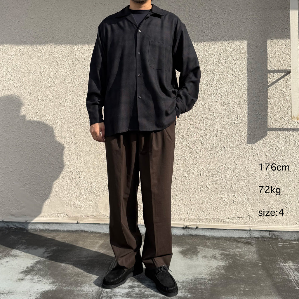 非常に上質なスーパーエクストラファインメリノウール糸を使用した、先染ライトウールビエラ・オンブレーチェック生地のオープンカラーシャツです。リラックスしたフィット感が特徴で、上質なメリノウールをミルドすることで、薄手ながらもしっかりと温かみのあるネル素材に仕上がっています。