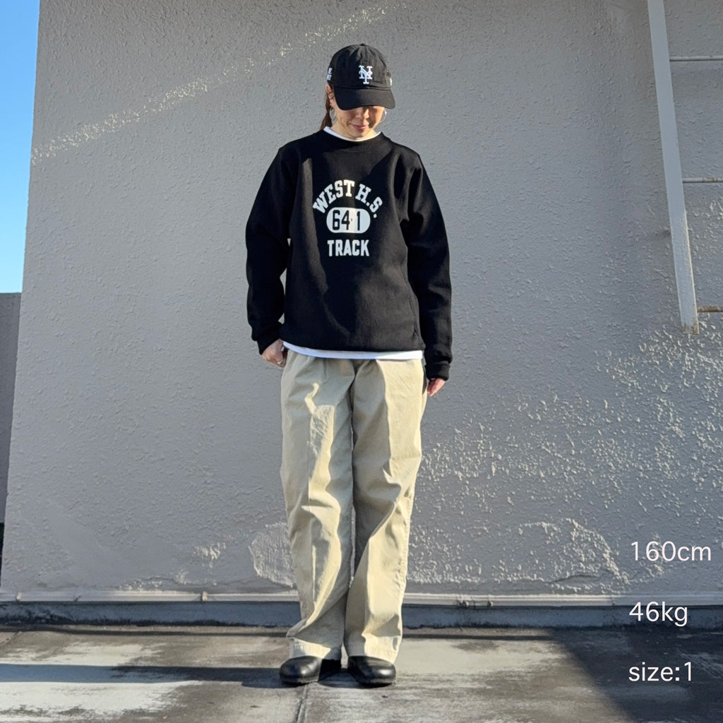オリジナルのチノ生地を使用した定番ワイドパンツの新色です。左右に2タックづつ入ったワイドシルエットで、腰回りはゆったりとし、裾に向かってゆるくテーパードした、リラックスして履けるデザインです。生地はやや薄手なので、夏でも快適に履いて頂ける一本です。