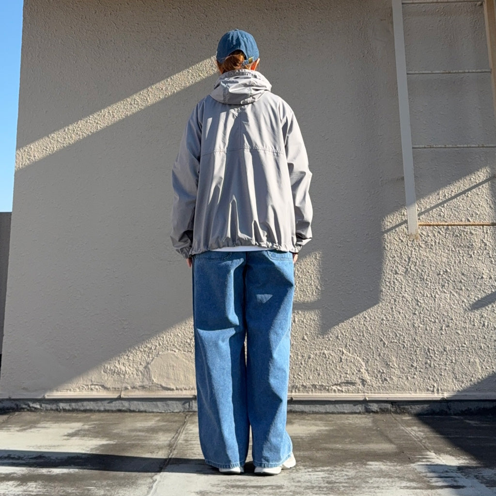 表地に地球環境を考え、サスティナブル原料を使用したPERTEXカンタム素材のポリエステルリップストップ生地を使用したマウンテンウインドパーカです。軽量性と耐久性を併せ持つ生地で、撥水性を備え、フロントに十分な容量のフラップポケットを配置し、肩周りの可動域を広げるヨークスリーブ仕様です。身幅にゆとりをもたせたオーバーサイズシルエットで、内ポケットに本体を収納できるストウポケット仕様です。