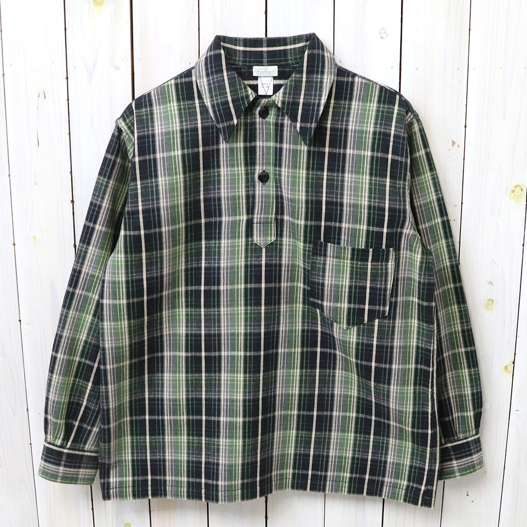 フランネルチェック柄生地を使用したプルオーバーシャツです。1935年にアメリカで制定されたWPA(公共事業促進局)に従事する労働者にブルーカラーのワークウエアが製造されました。WPAの衣料はデザインのベースはミリタリーワークウエアで、多くのアレンジが施され、どこか牧歌的な温もりがあるのが特徴です。ボックスシルエットで、やや小ぶりの左胸ポケットがポイントです。