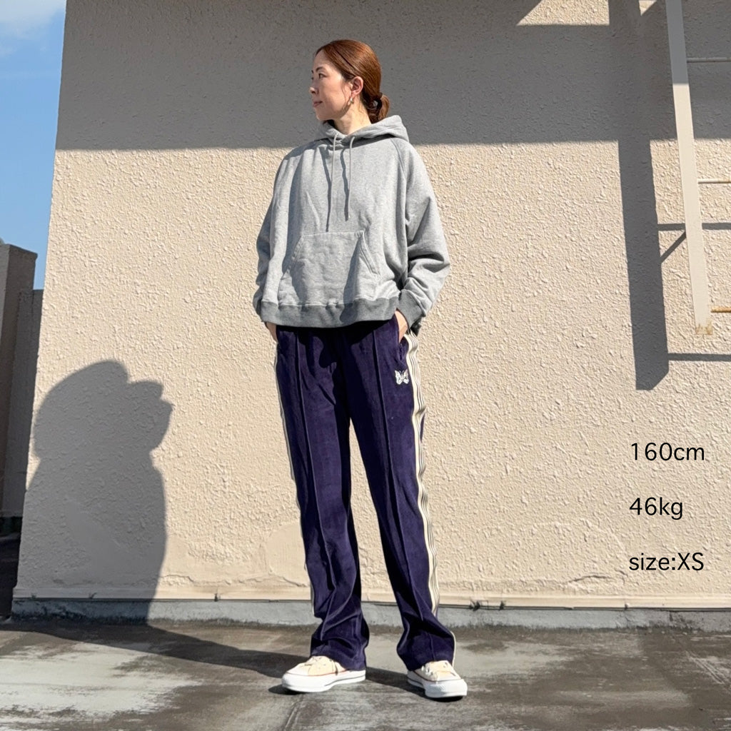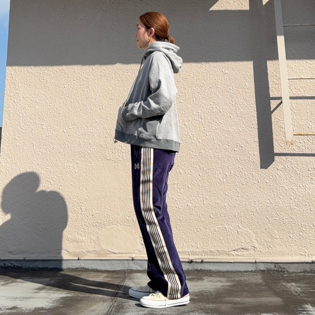 Needlesの代表的なアイテムのトラックパンツのナロータイプです。ベロア生地を使用し、センタープリーツにワンポイントのパピヨン刺繍、サイドのテープなどニードルスならではのデザインが感じられる一本です。スポーティーなアイテムながら、センタープレス仕様が奇麗な印象なので、テーラードスタイルやミリタリースタイルなどとミックスさせて個性的なスタイリングを楽しめます。
