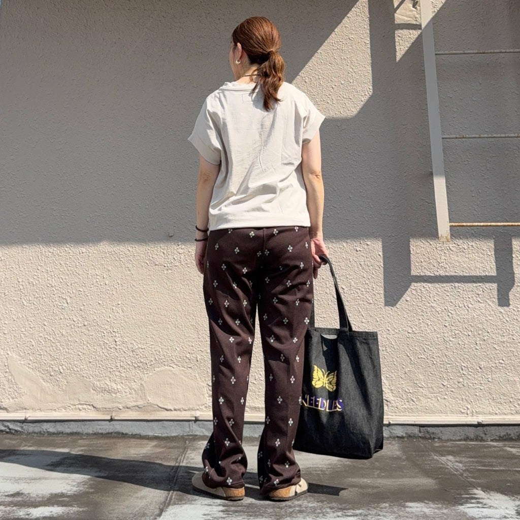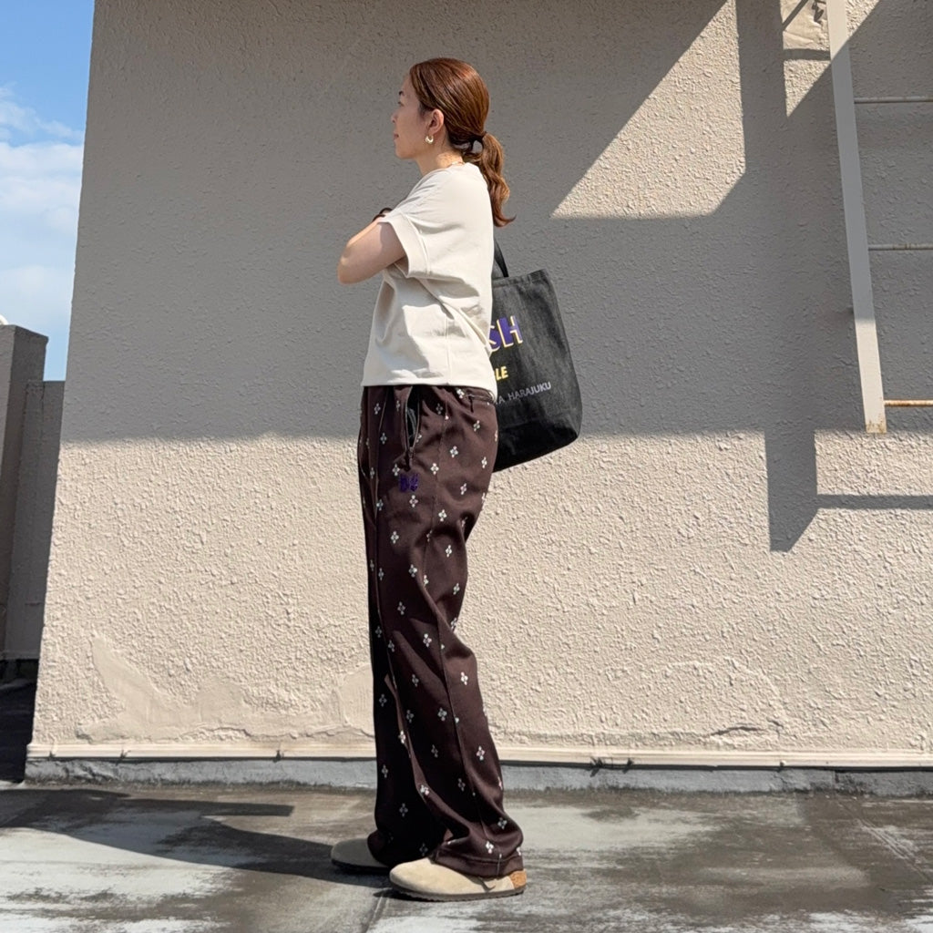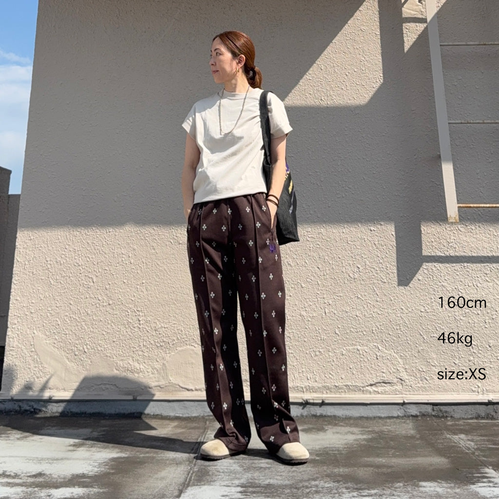 Needlesの代表的なアイテムのトラックパンツです。ポリエステル素材のフラワー柄ジャガード生地を使用し、センタープリーツにワンポイントのパピヨン刺繍がニードルスならではのデザインを感じられる一本です。スポーティーなアイテムながら、センタープレス仕様が奇麗なシルエットで、個性的なスタイルが楽しめる一本です。