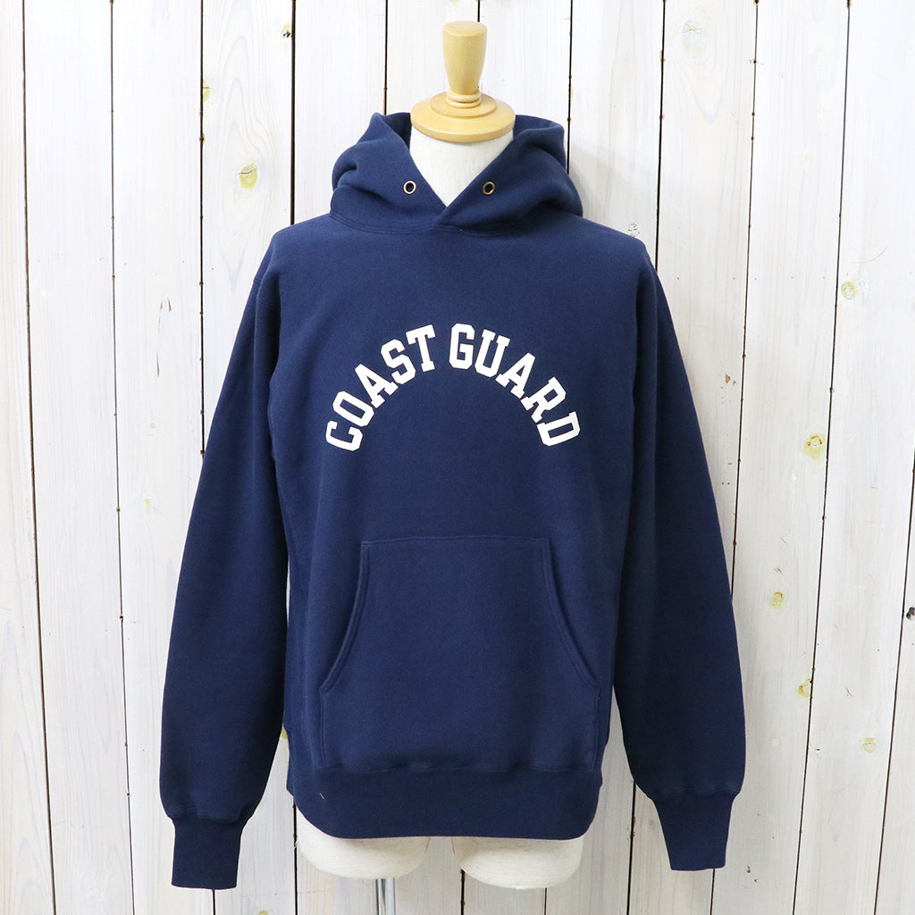 沿岸警備隊のトレーニング用のパーカーとして使用されていたリバーススウェットです。オリジナルで編み上げたヘビースウェットで、ホリゾンタルとは「横方向」という意味を表し、従来のスエットシャツが洗濯時に起こる縦方向の縮みを軽減するため、縦編みの身頃生地を横向きに使用し、横方向への動きやすさを得るためアクションリブを両サイドに施している点が特徴です。激しい動きにもスムーズに対応し、ゆとりのあるシルエットが魅力です。前側にはCORST GUARDのプリントが施されています。