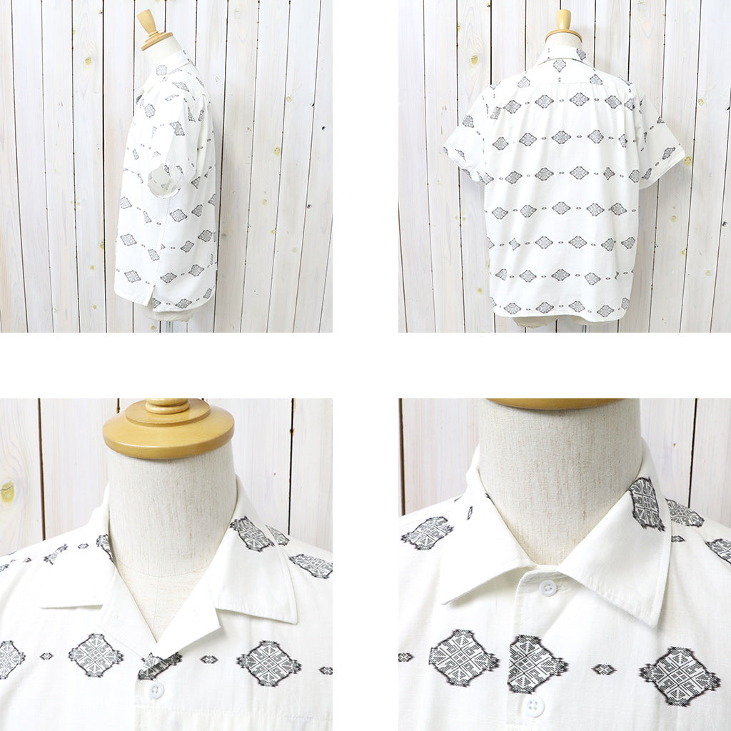 イカットプリント柄生地を使用した定番のキャンプシャツです。肌触りがサラッとしたコットン生地で、リラックス感のあるオープンカラーや、対角に取り付けられたパッチポケットなど、カジュアルなリゾートウェアを思わせる爽やかで、夏らしいデザインの半袖シャツです。
