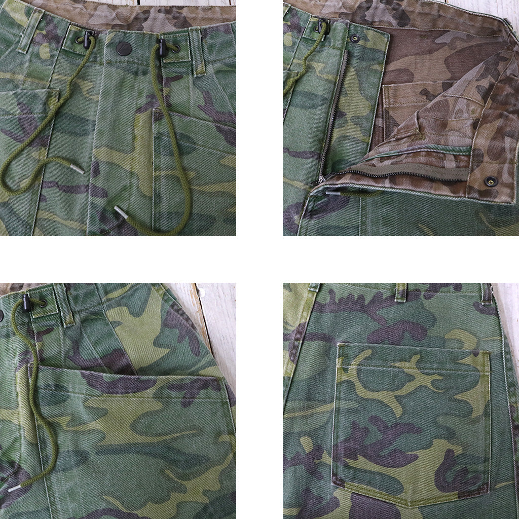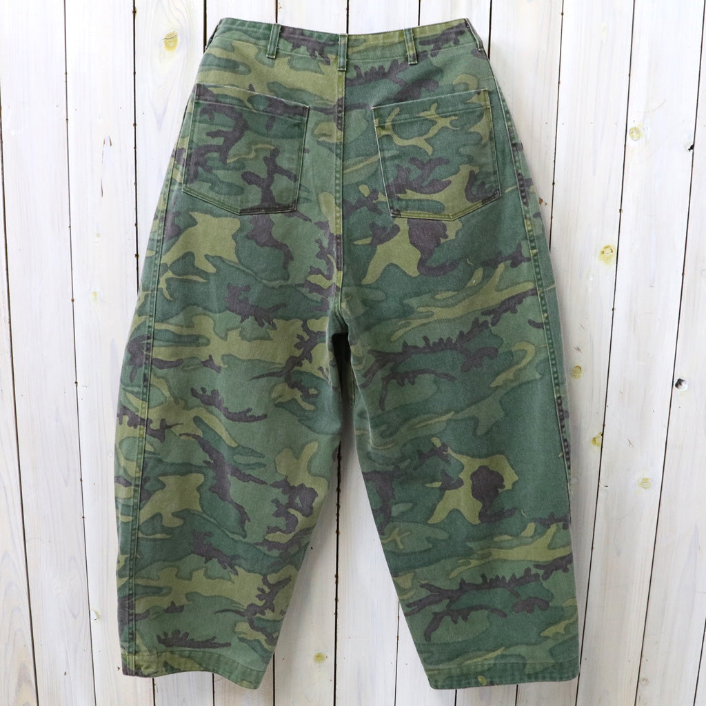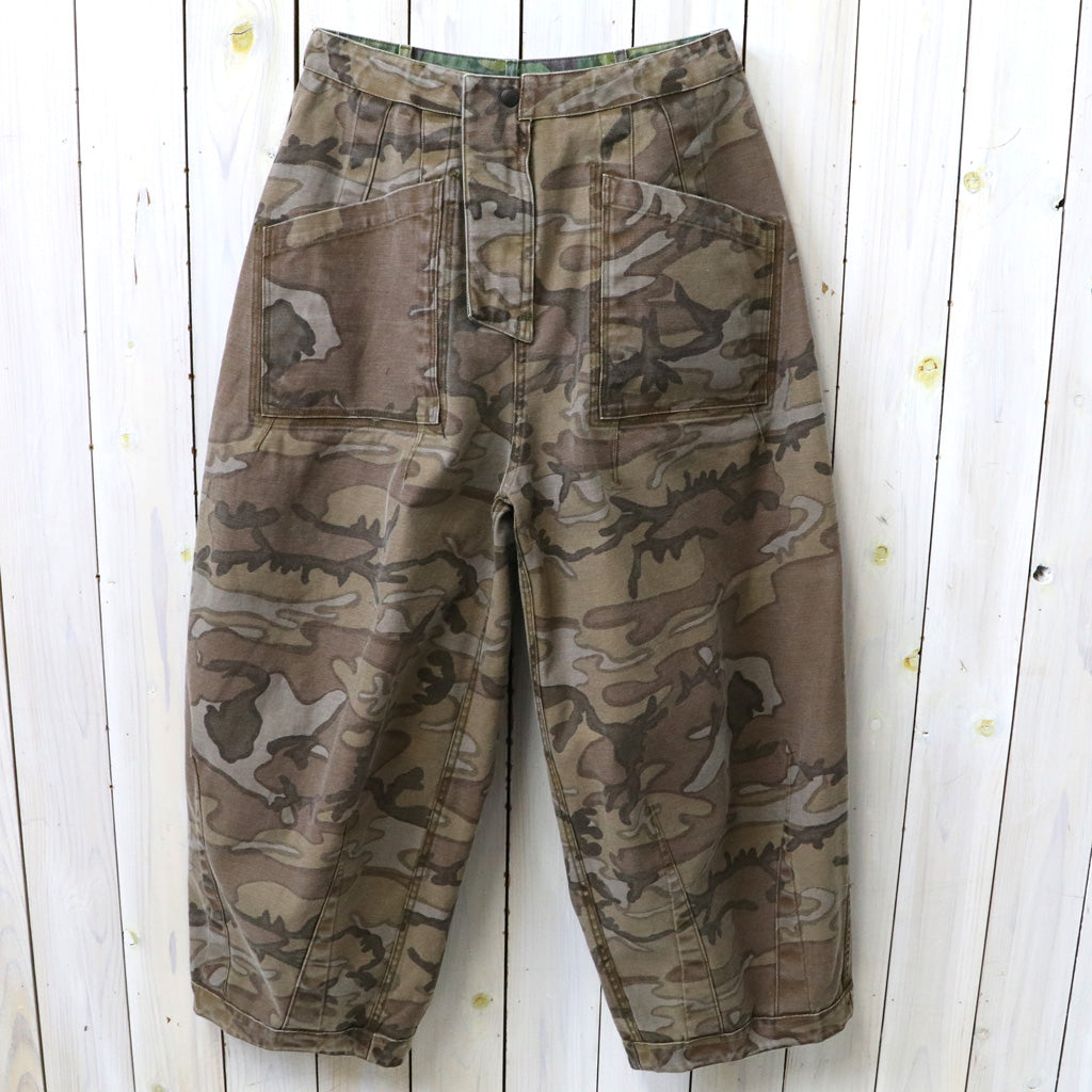 カモフラージュ柄のリバーシブルのH.D. Pantです。表面はグリーン、裏面はブラウンのカモフラージュ柄はリバーシブルになっており、スタイリングに合わせて使い分けが可能です。ウエストと裾のダーツ処理によりフロントが大きくふくらんだ独特のシルエットのパンツで、リラックス感があり、開放感のある履き心地が魅力的です。同素材のフードジャケットとセットアップ着用が可能です。