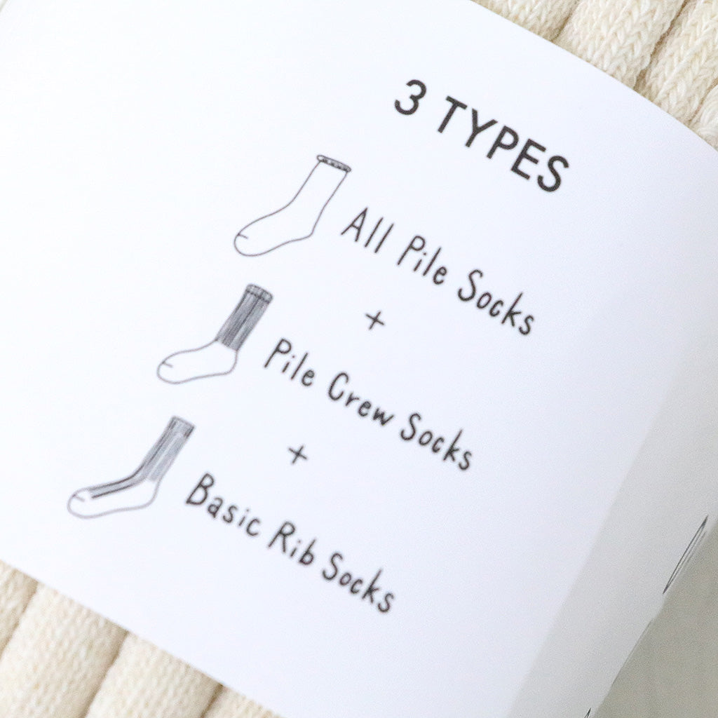 ローゲージリブ、スポーティな足底パイル、肉厚オールパイルの3種類の異なるデザインのソックスをパッケージした〈ROTOTO〉のスタンダードアイテムです。オーガニックコットンを使用し、生成は未染色のまま編み立てています。その日の気分やコーディネートに合わせてデザインを選べるだけでなく、オーガニックコットンのやさしい素材感を日常的に楽しめます。プレゼントにもオススメしたい一品です。