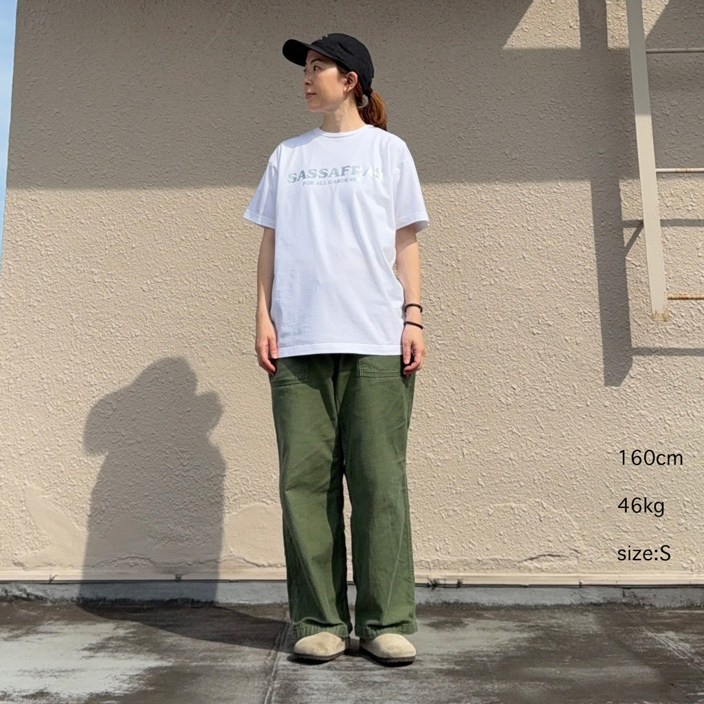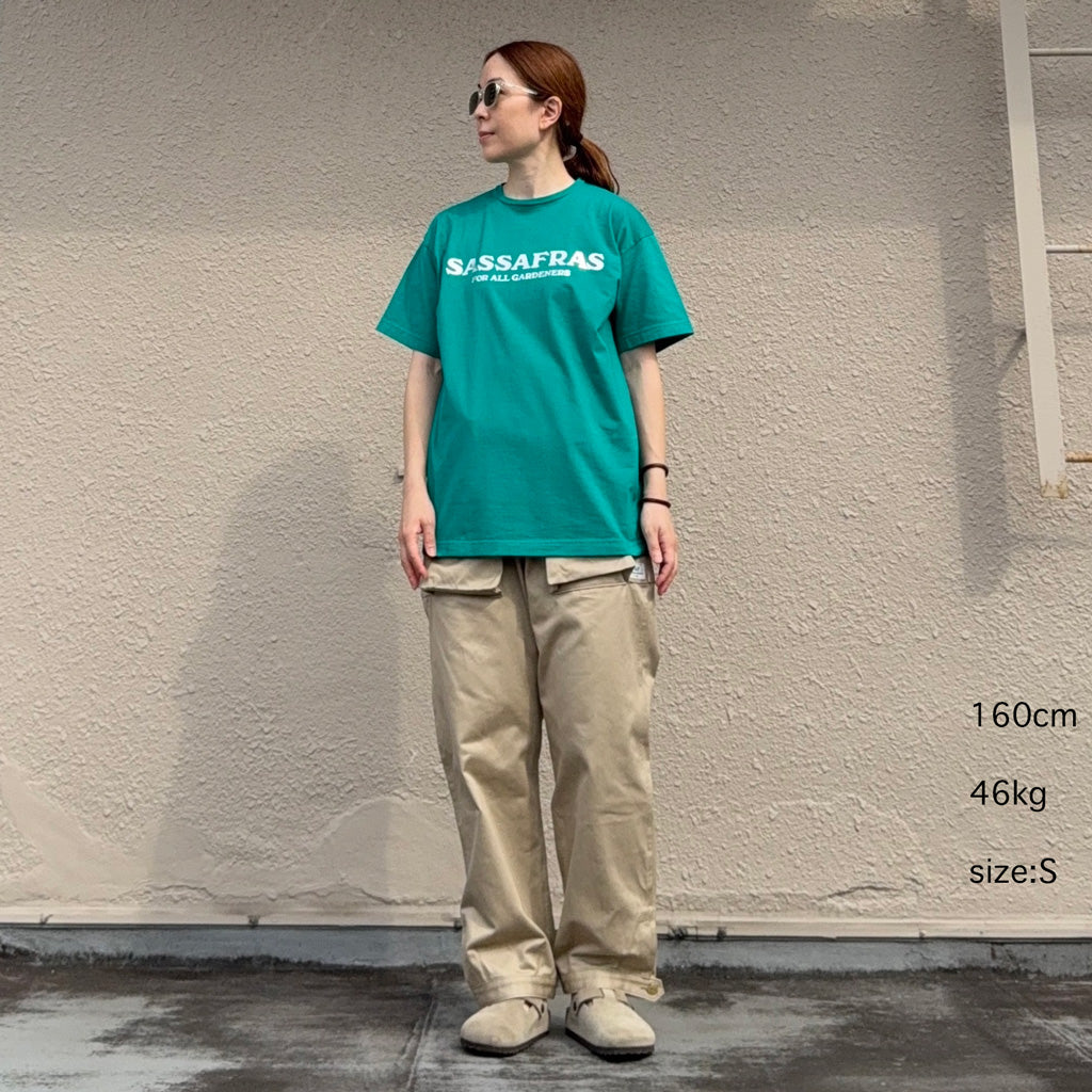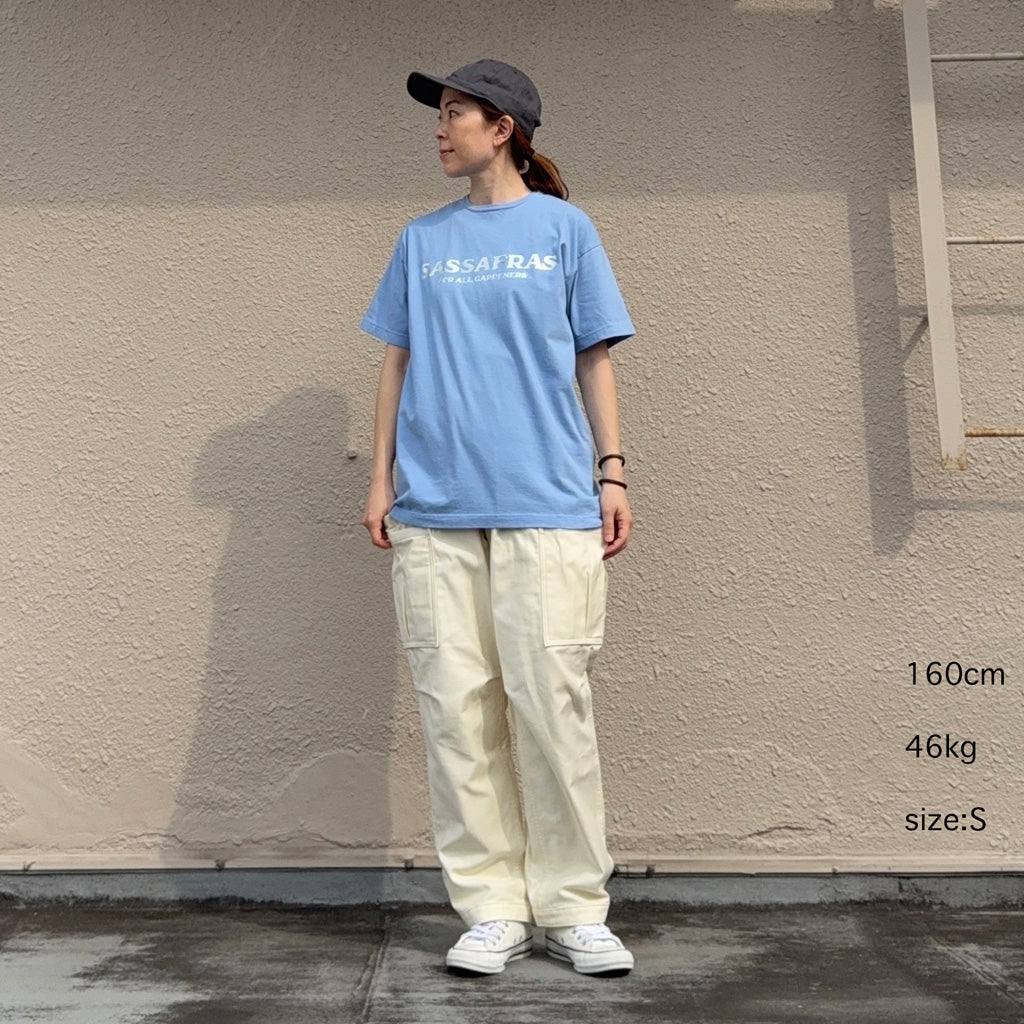 上質なコットンの天竺生地を使用したプリントTシャツです。洗い加工を施し滑らかになったボディは肌触りも良く快適な着心地です。脇部分がシームレスになったデザインは着用時に自然なシルエットを出してくれます。フロントにはSASSAFRASのシルバープリントされたシンプルなデザインです。ネックラインのリブは、やや細めですっきりとしていて洗濯を繰り返しても伸びにくい丈夫な作りです。一枚での着用からジャケット、シャツのインナーとしても存在感を発揮する一枚です。