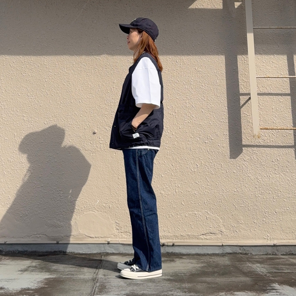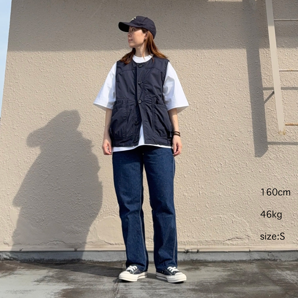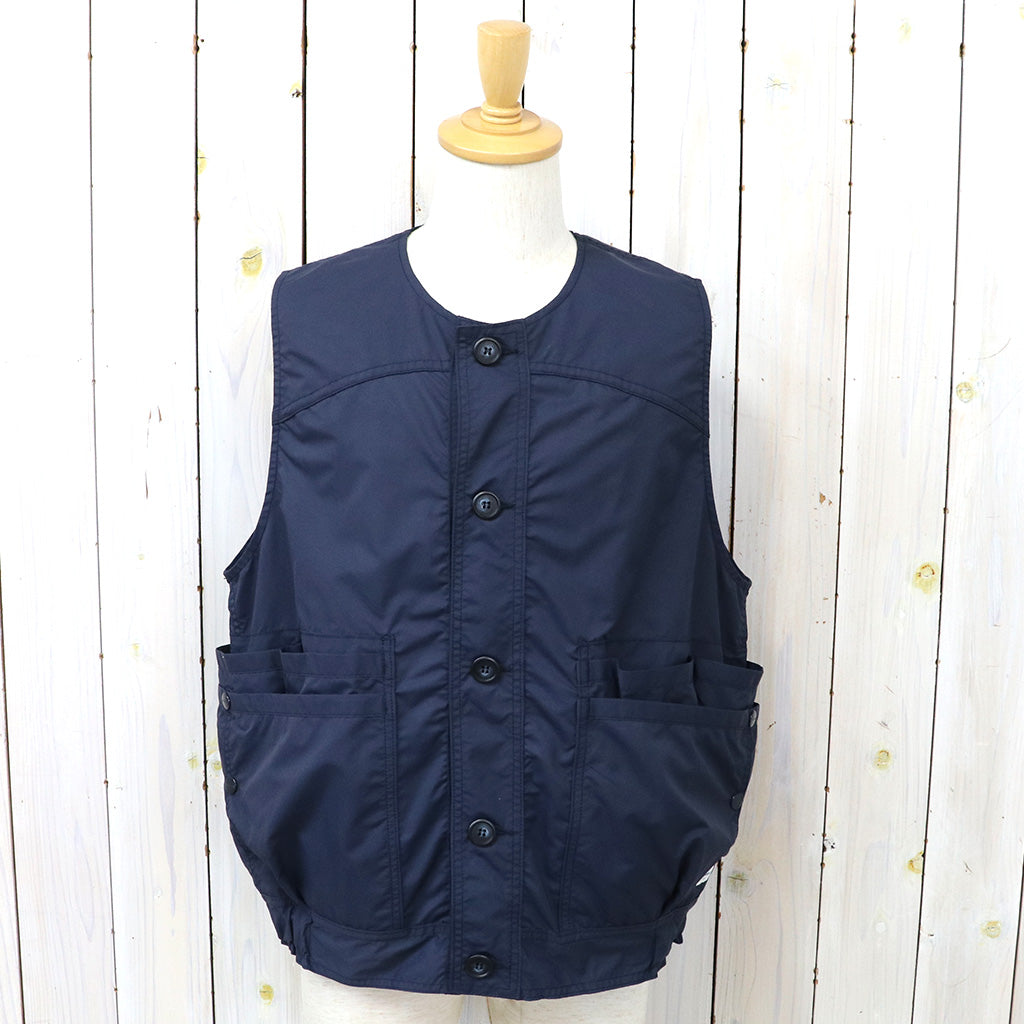 ナイロン生地を使用した定番ベストです。襟なしで、少し身幅がゆったりとしたシルエットです。両サイドにはWHOLE HOLEシリーズでお馴染みの2段のオーバーポケットが配置され、存在感のあるベストで、春夏のレイヤードスタイルにおすすめの一着です。