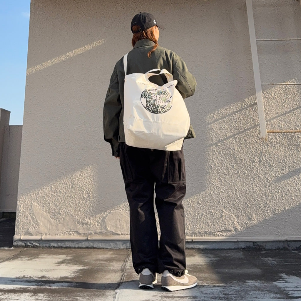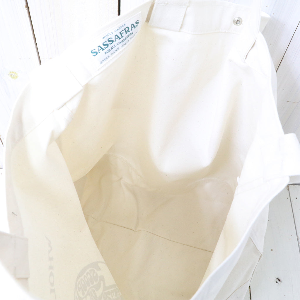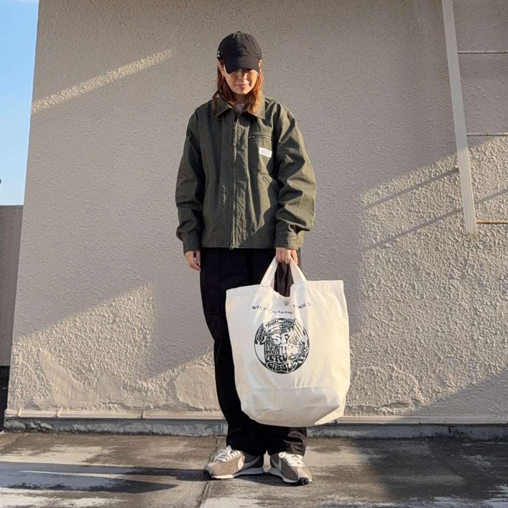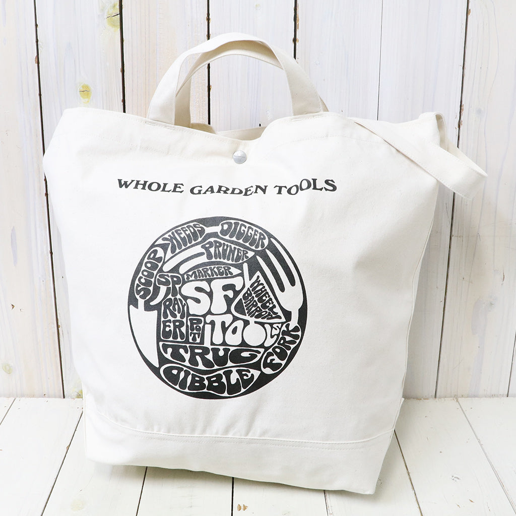 キャンバス生地を使用した2WAYトートバッグです。手持ちと斜めがけの2通りが可能で、フロントには今シーズンのメインテーマの”WHOLE GARDEN TOOLS”のデザインがプリントされています。ガーデニングツール入れとしてはもちろん、日常の通勤、通学、お買い物など多目的に使用できるバッグです。