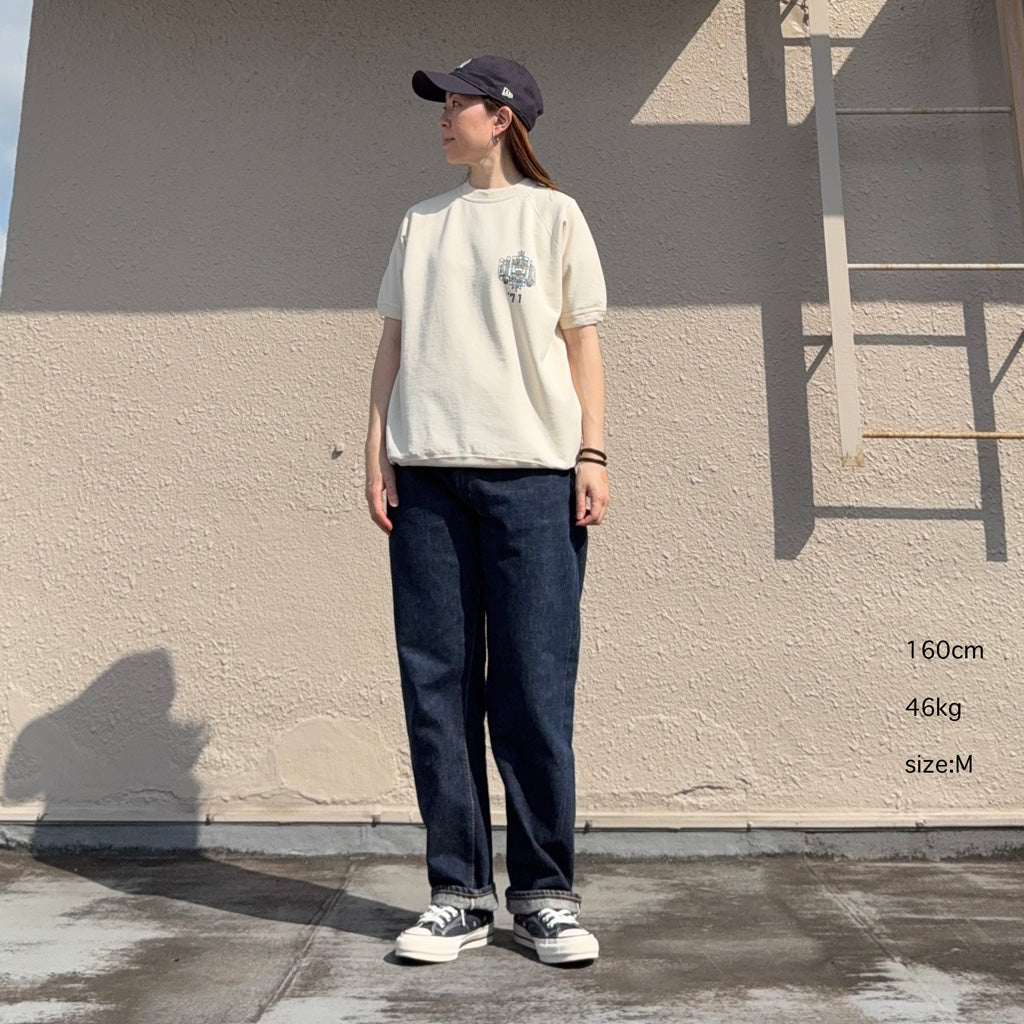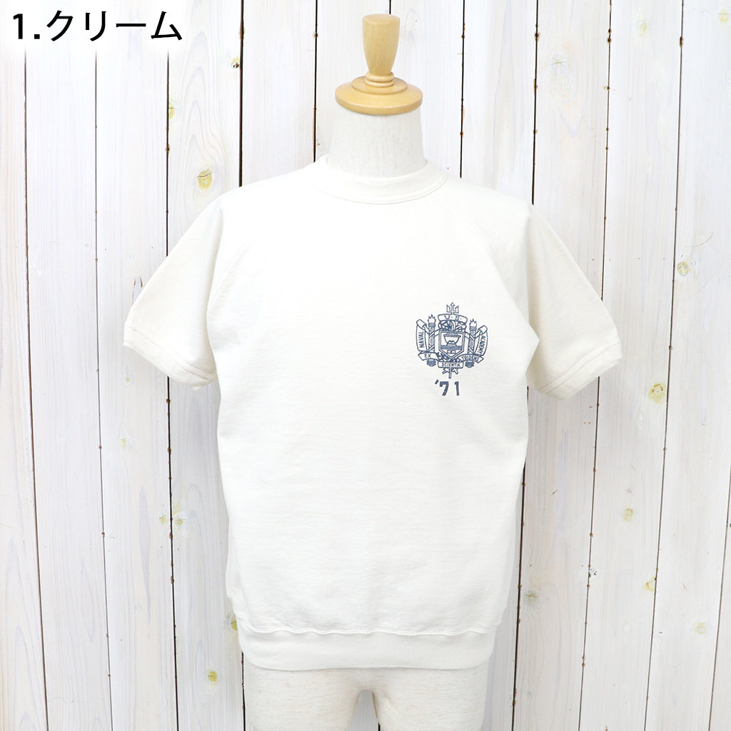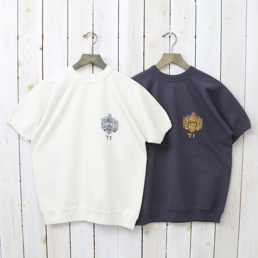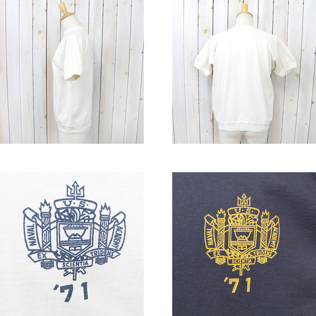 吊り編機で織られた薄手スウェット生地の半袖スウェットです。左胸にU.S.NAVAL ACADEMYのプリントが施され、吊り編機ならではのふっくらとした肌触りです。一枚着はもちろん、スウェットならではのレイヤードスタイルも楽しめる一枚です。